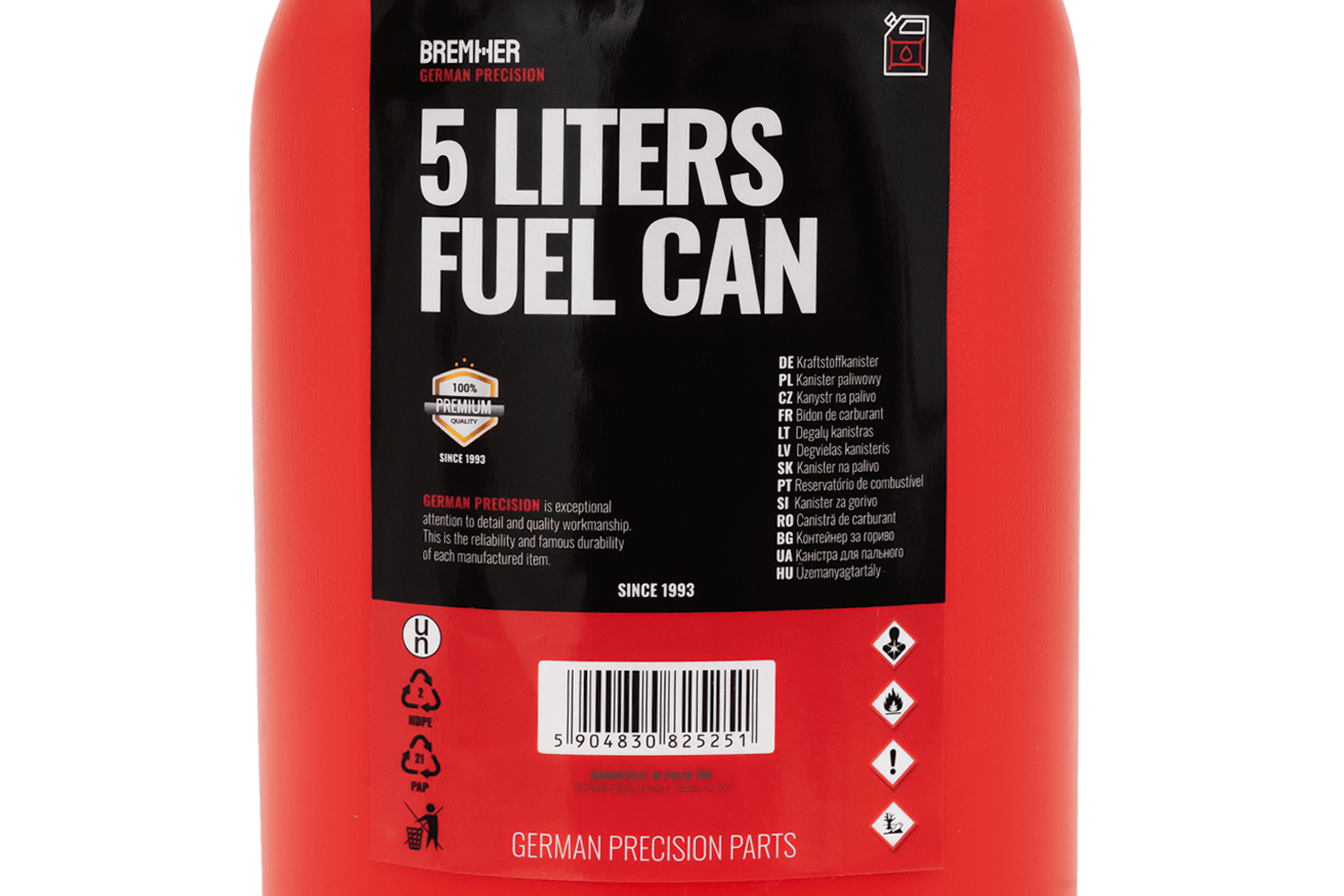 Der Kanister ist für die Lagerung und den Transport von Kraftstoffen, Ölen, Betriebsflüssigkeiten und Wasser konzipiert. Er ist EU-zugelassen und darf daher gemäß den geltenden Sicherheitsvorschriften für den Transport von Kraftstoffen, einschließlich brennbarer Kraftstoffe , verwendet werden.
