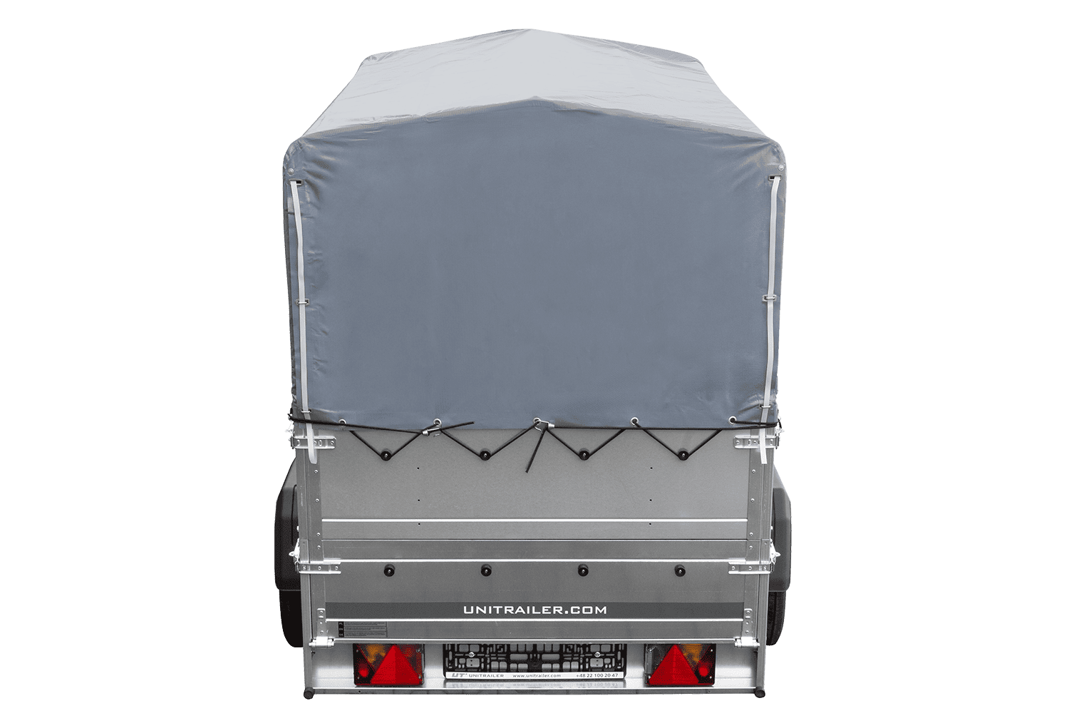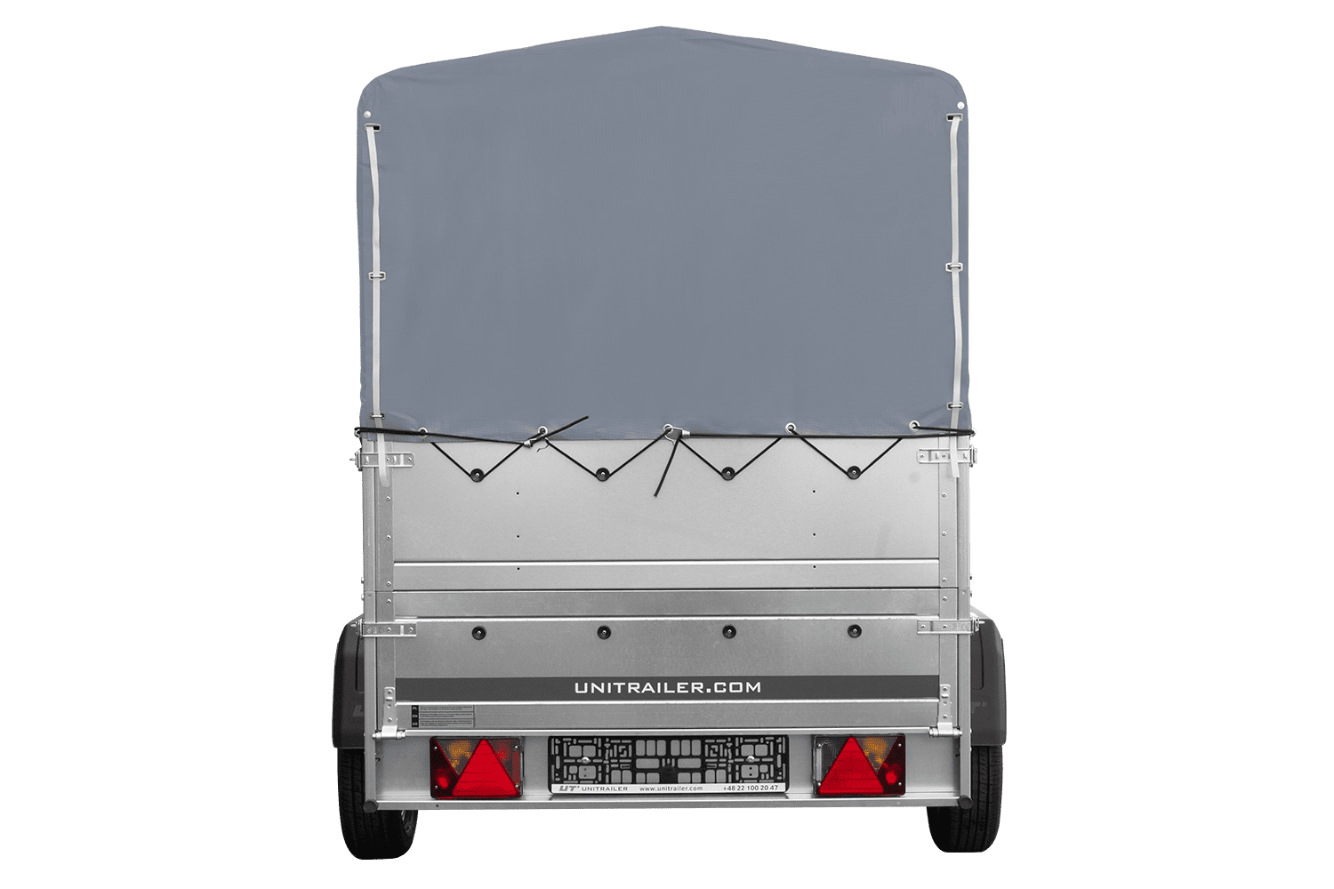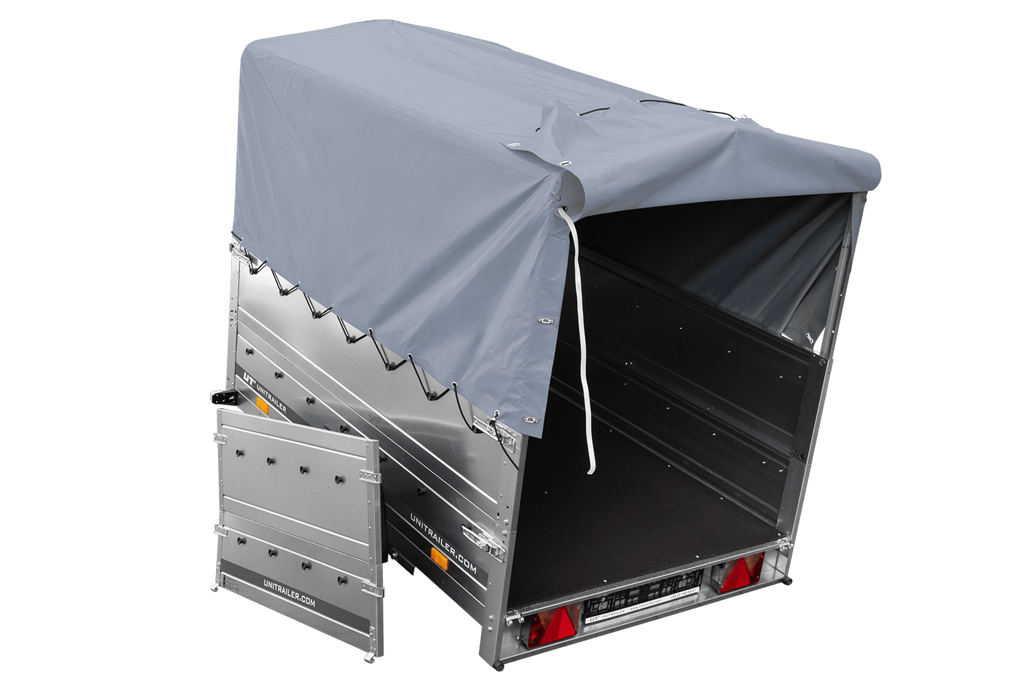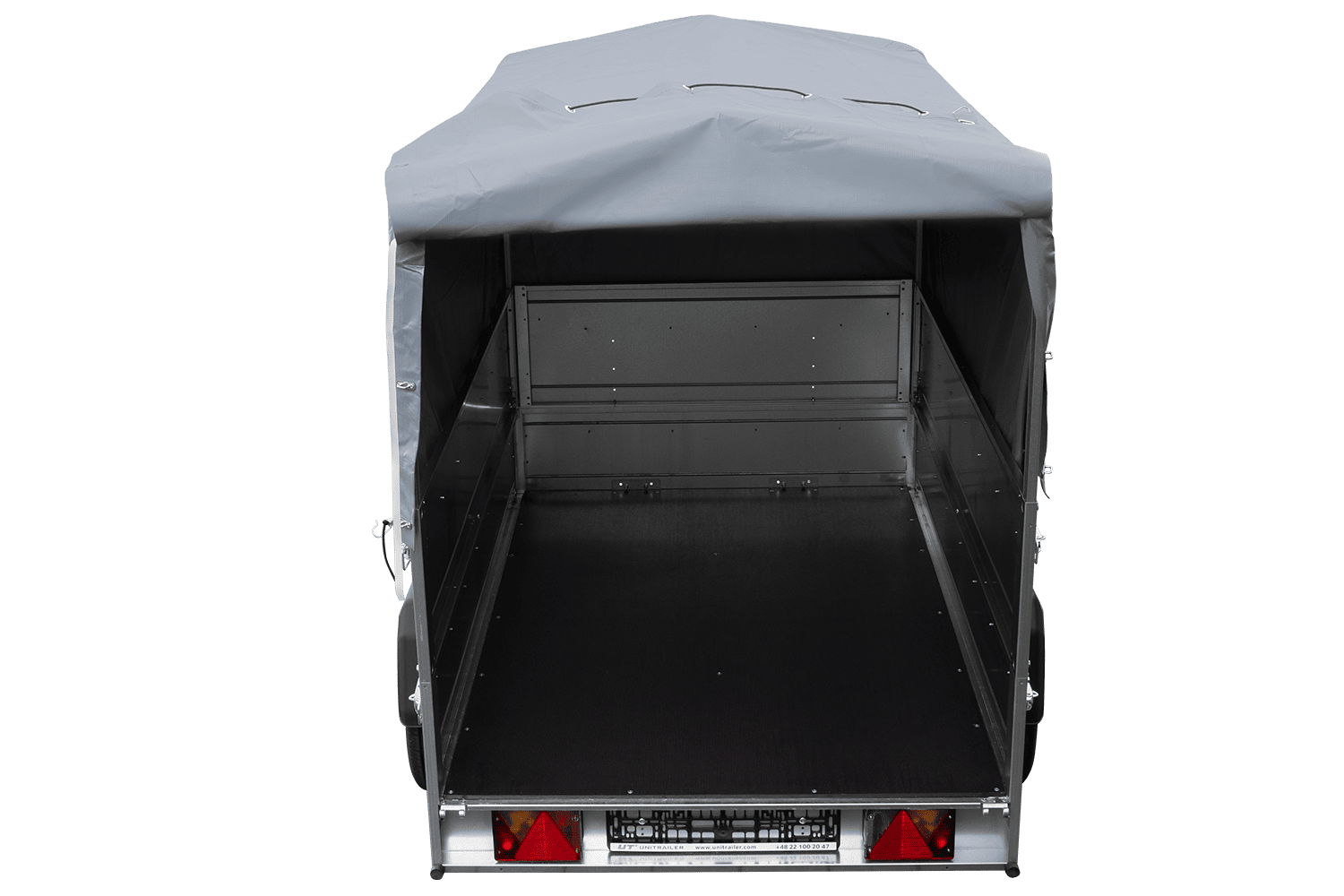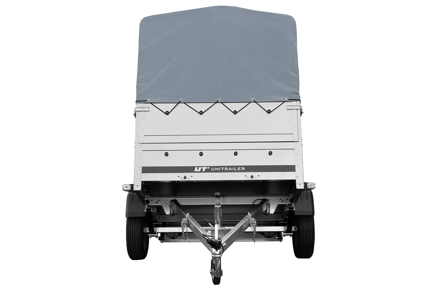 Leichtanhänger auf Blattfedern 200x125 UNITRAILER GARDEN 201/R KIPP mit BIS-Seiten, H-800-Rahmen und grauer Plane
