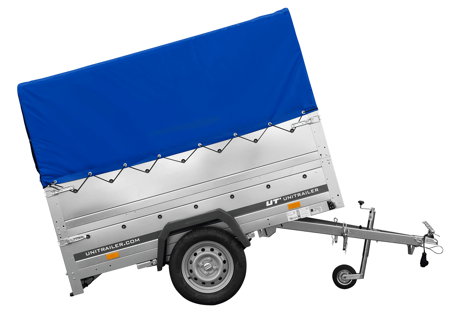 Leichtanhänger auf Federn 200x125 UNITRAILER GARDEN 201/R KIPP mit BIS-Seiten, H-800-Rahmen und blauer Plane