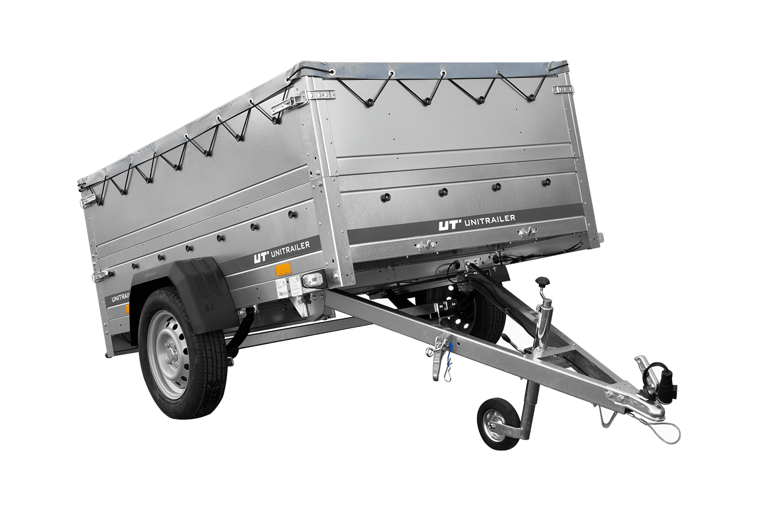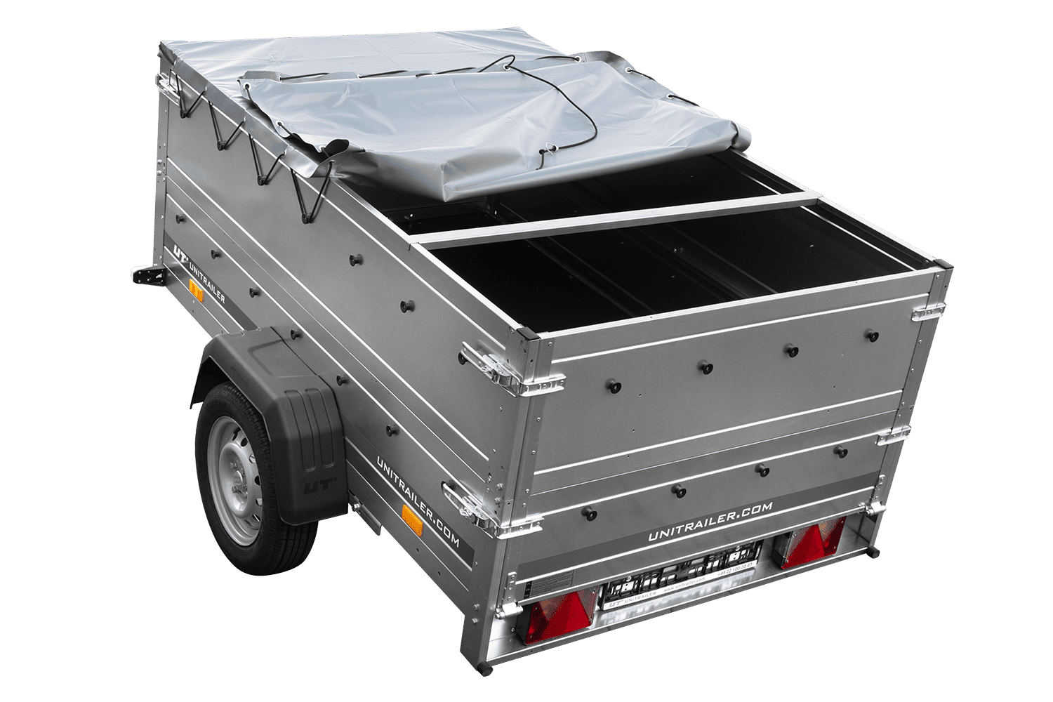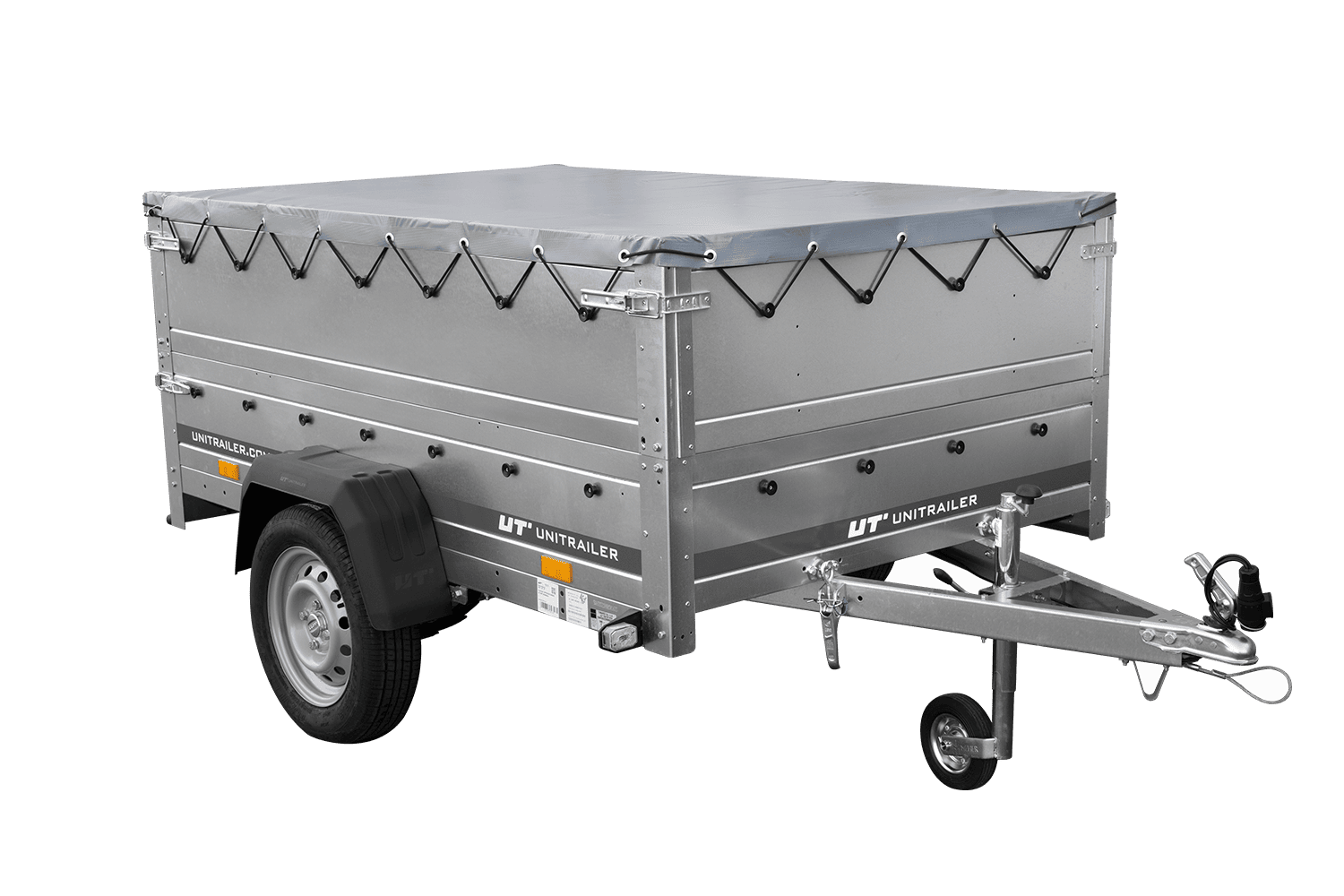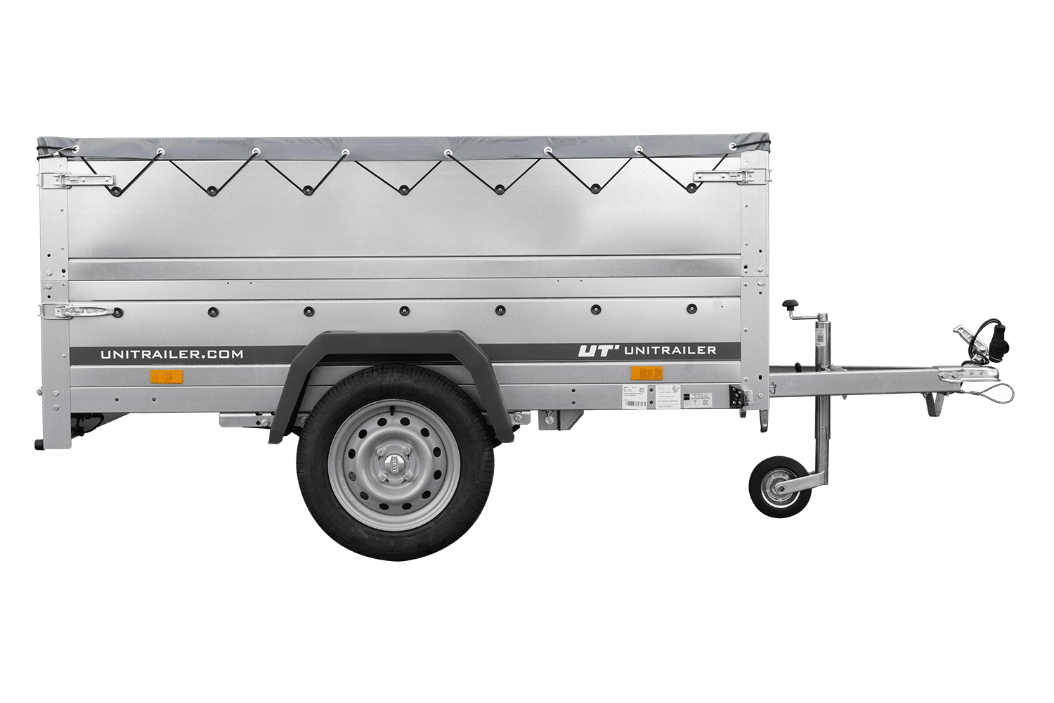 Leichtanhänger auf Blattfedern 200x125 UNITRAILER GARDEN 201/R KIPP mit BIS-Seiten, H-0-Rahmen und grauer Plane