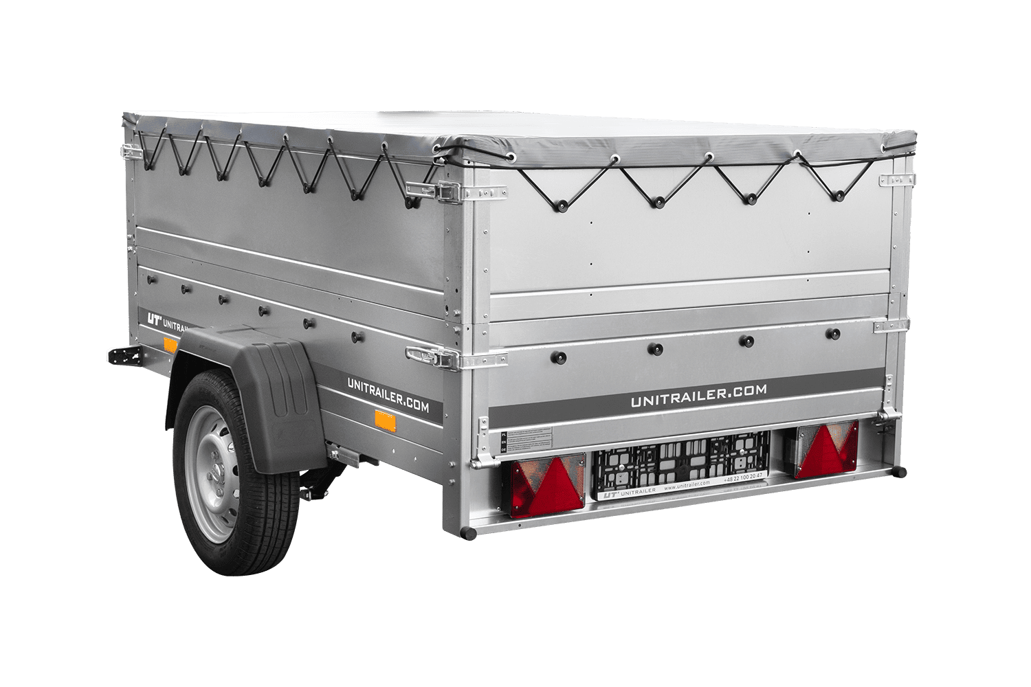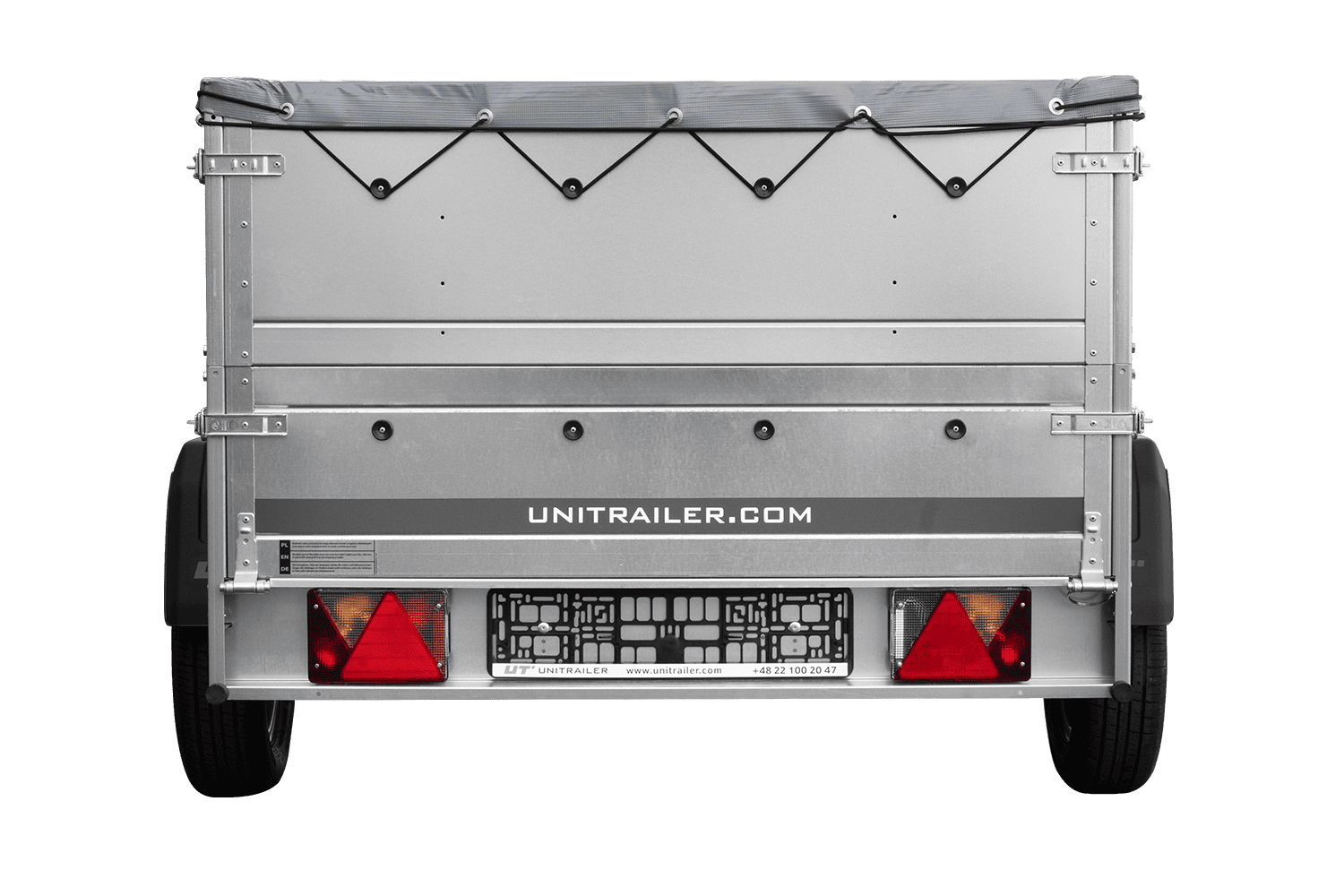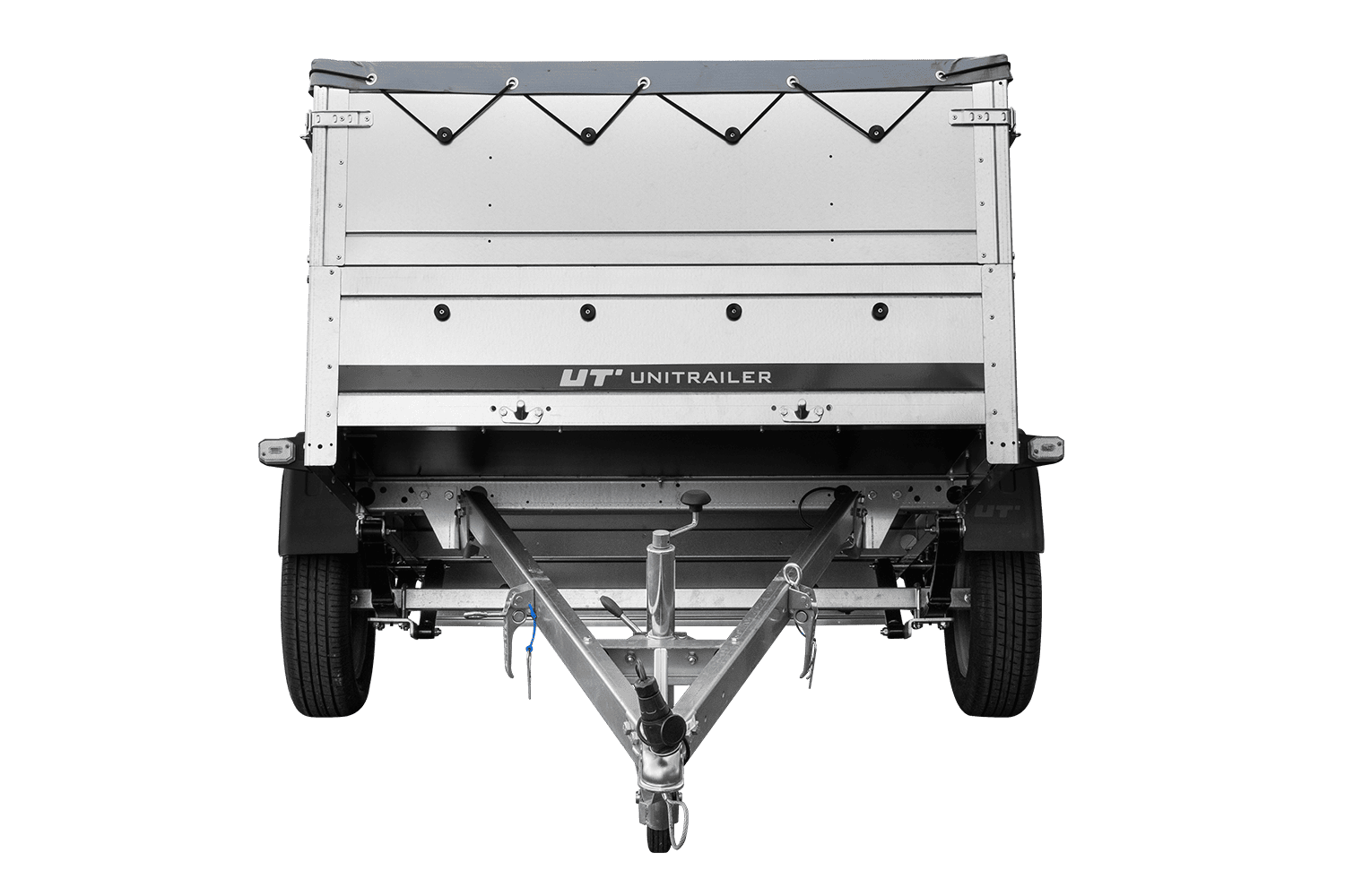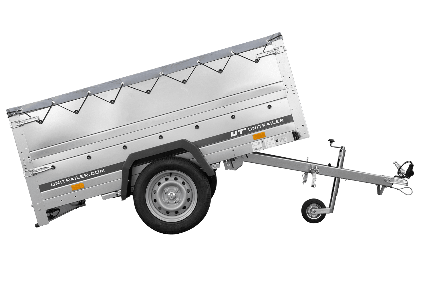 Leichtanhänger auf Blattfedern 200x125 UNITRAILER GARDEN 201/R KIPP mit BIS-Seiten, H-0-Rahmen und grauer Plane
