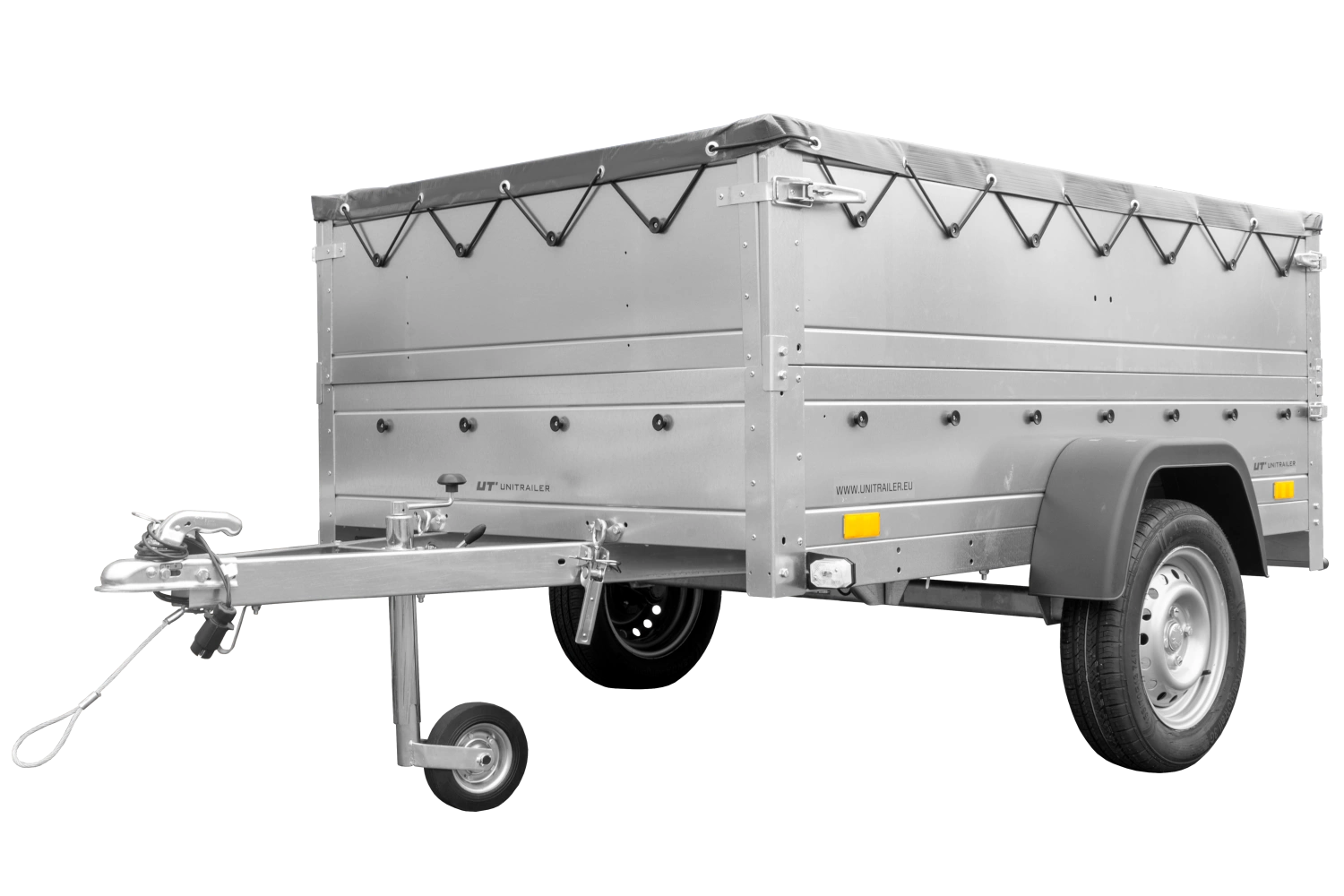 Leichtanhänger auf Federn 200x125 UNITRAILER GARDEN 201/R KIPP mit BIS-Seiten, H-0-Rahmen und grauer Plane