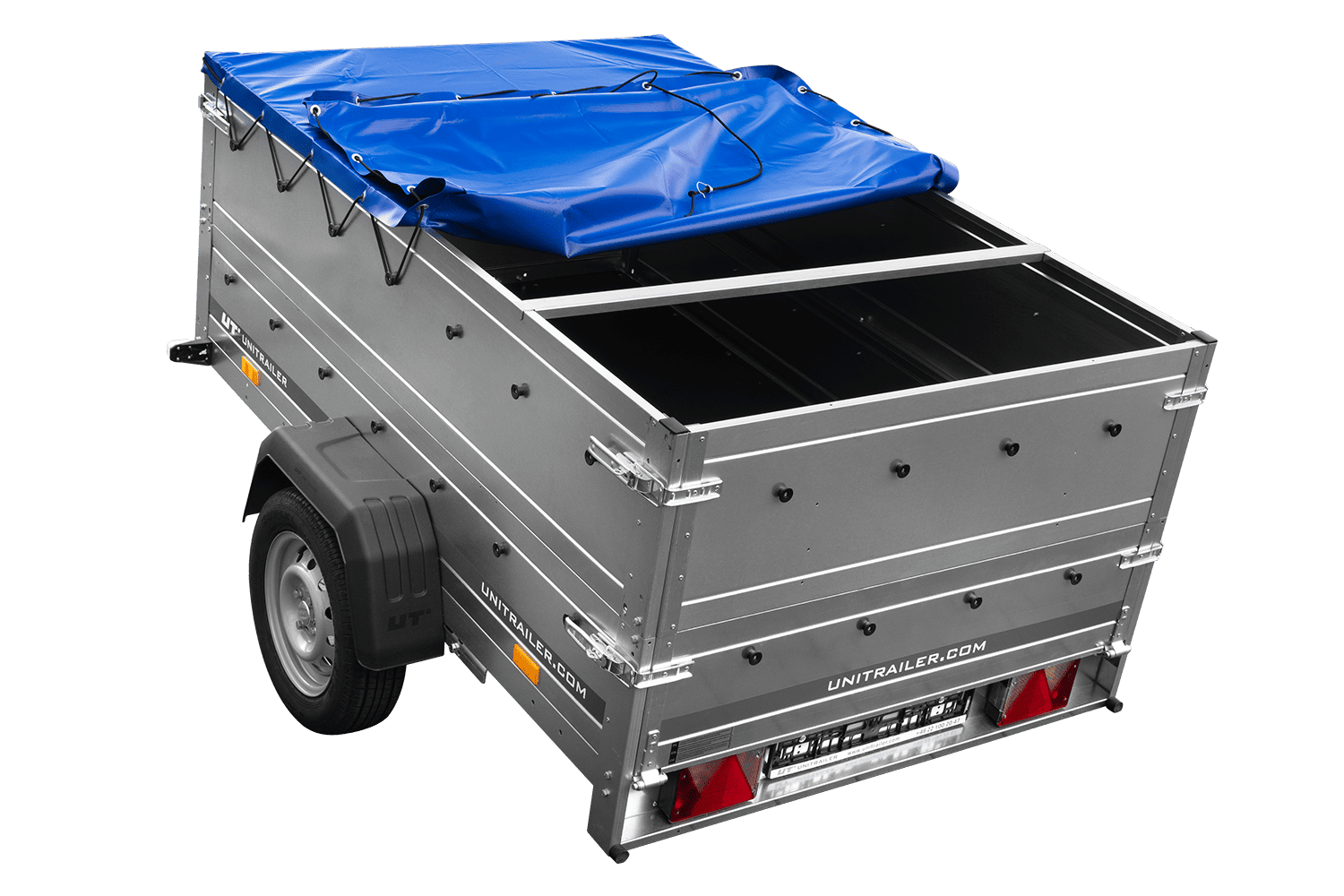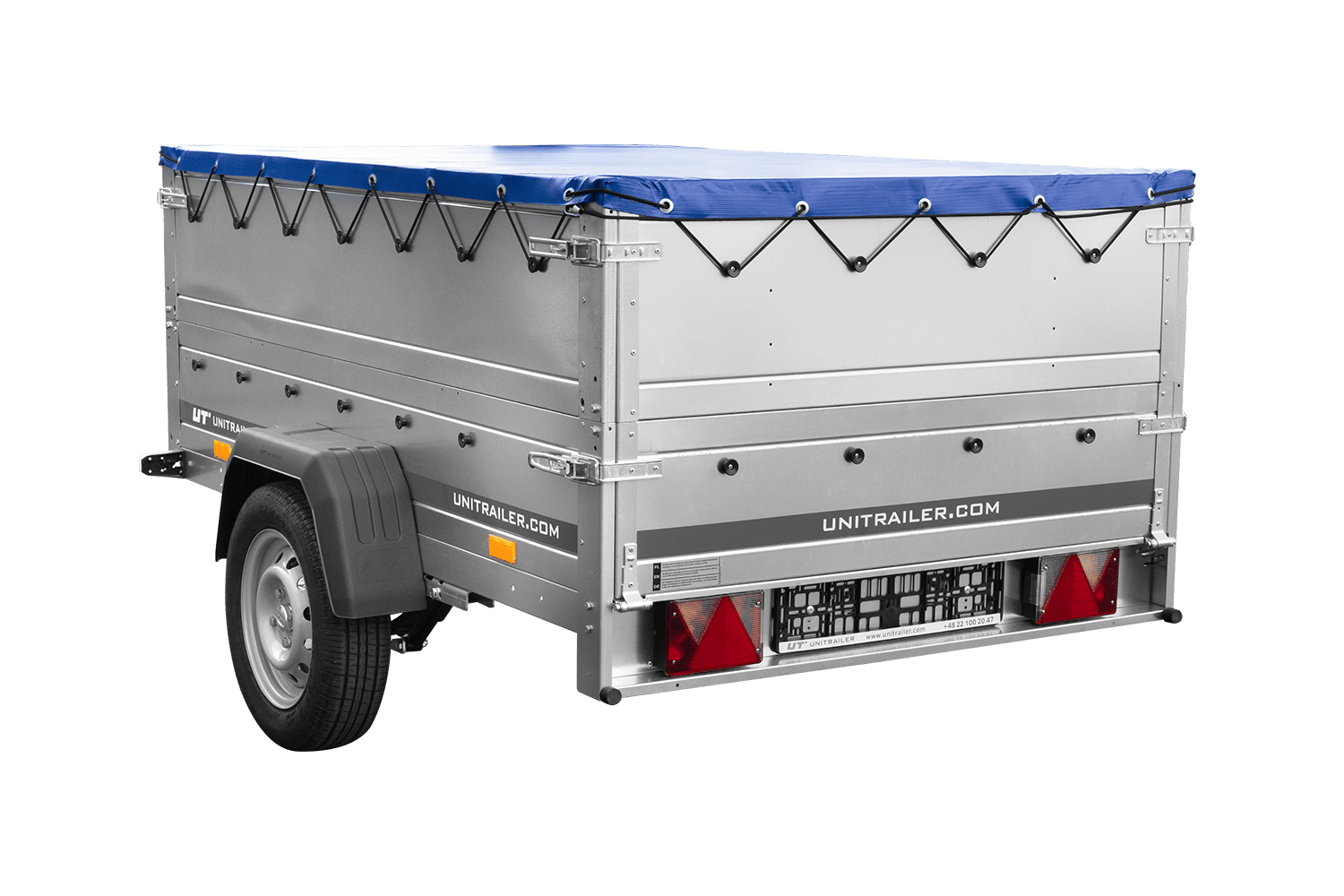 Leichtanhänger auf Federn 200x125 UNITRAILER GARDEN 201/R KIPP mit BIS-Seiten, H-0-Rahmen und blauer Plane