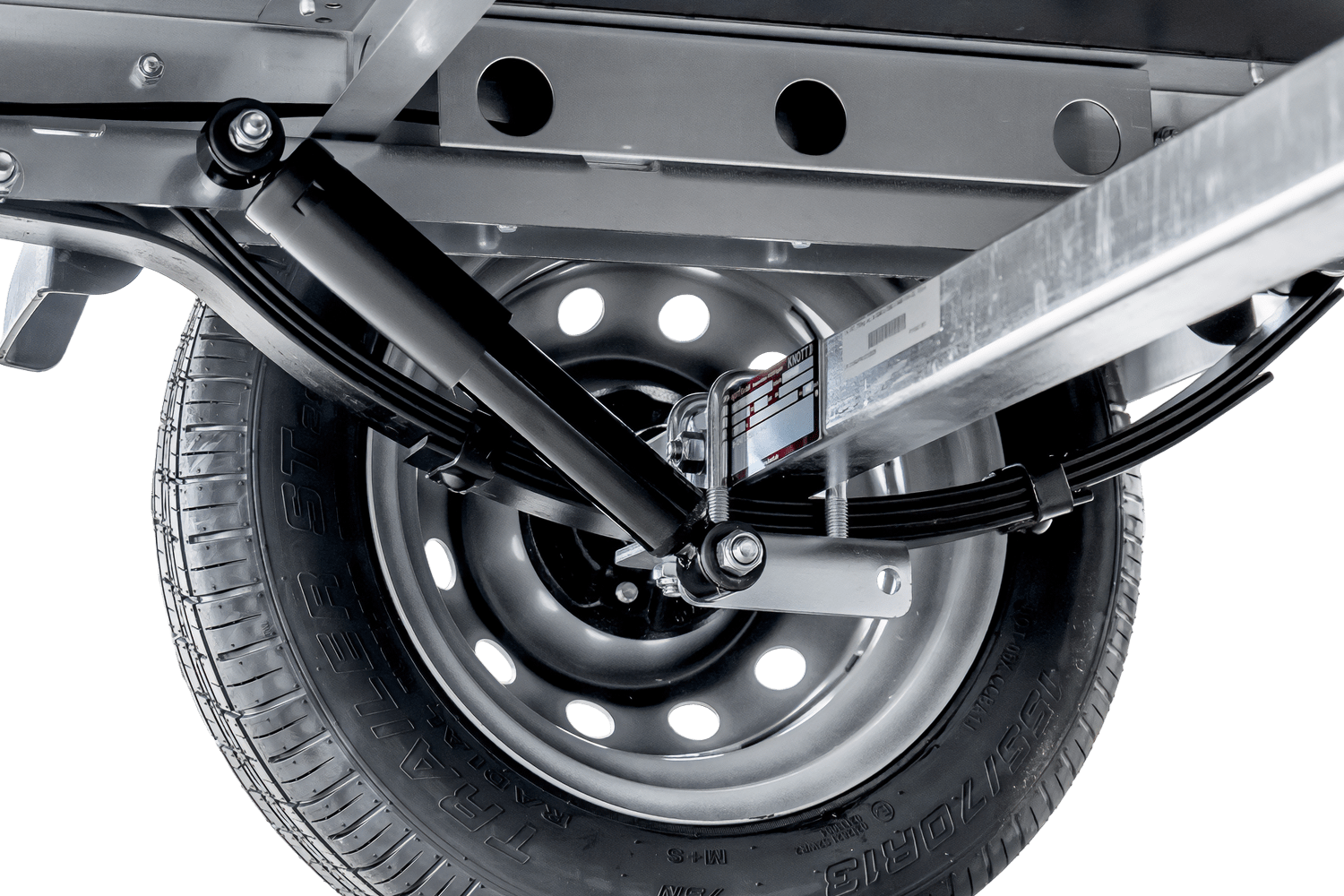 • Leichter Anhänger mit BIS-Seitenwänden und H800-Rahmen mit grauer Plane. Abmessungen der Transportfläche: 230 x 125 cm. Dank der Federung mit Stoßdämpfern ist eine ruhige und komfortable Fahrt auch unter schwierigsten Bedingungen gewährleistet.