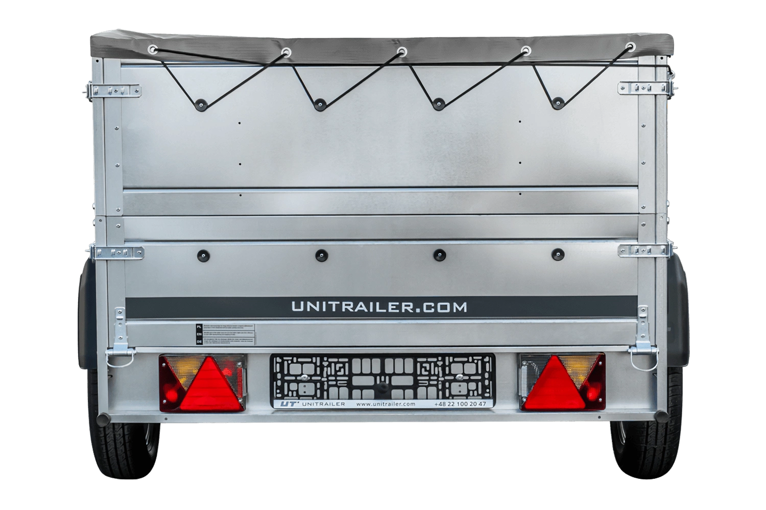 PKW-Anhänger auf Federn 230x125 UNITRAILER GARDEN 230/R KIPP mit BIS-Seiten, H-0-Rahmen und grauer Plane