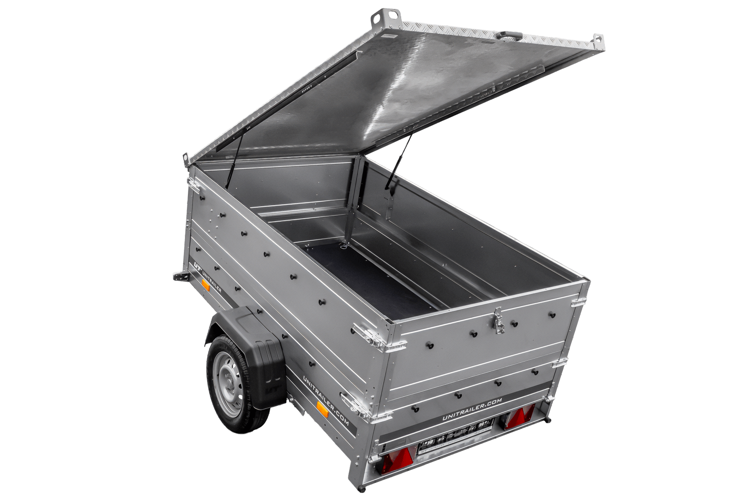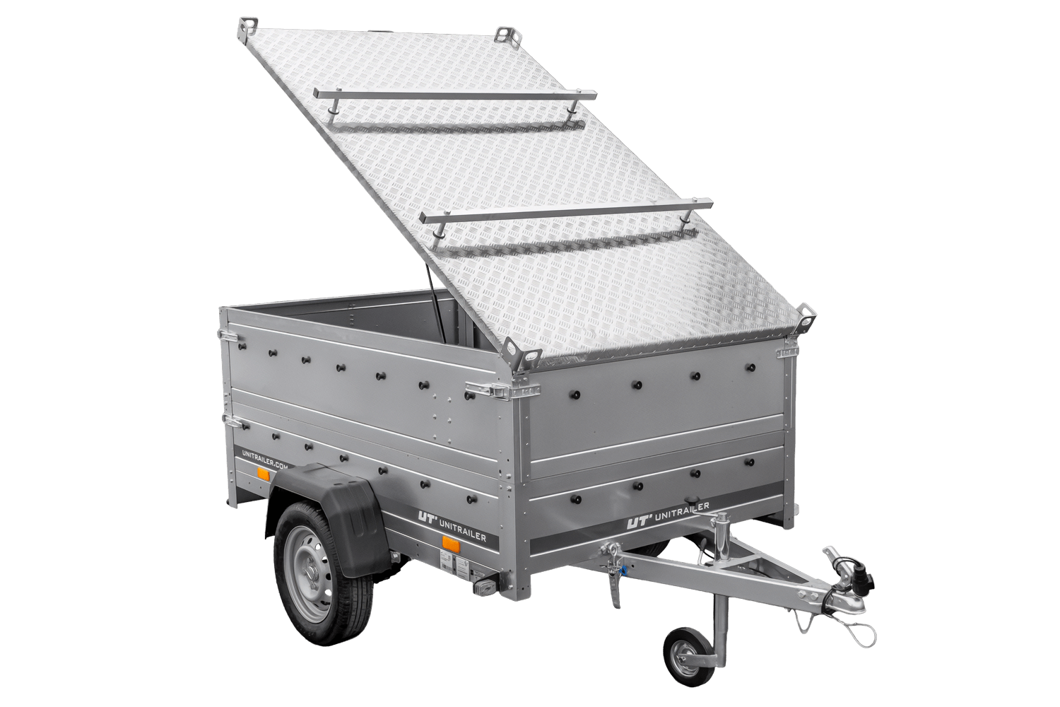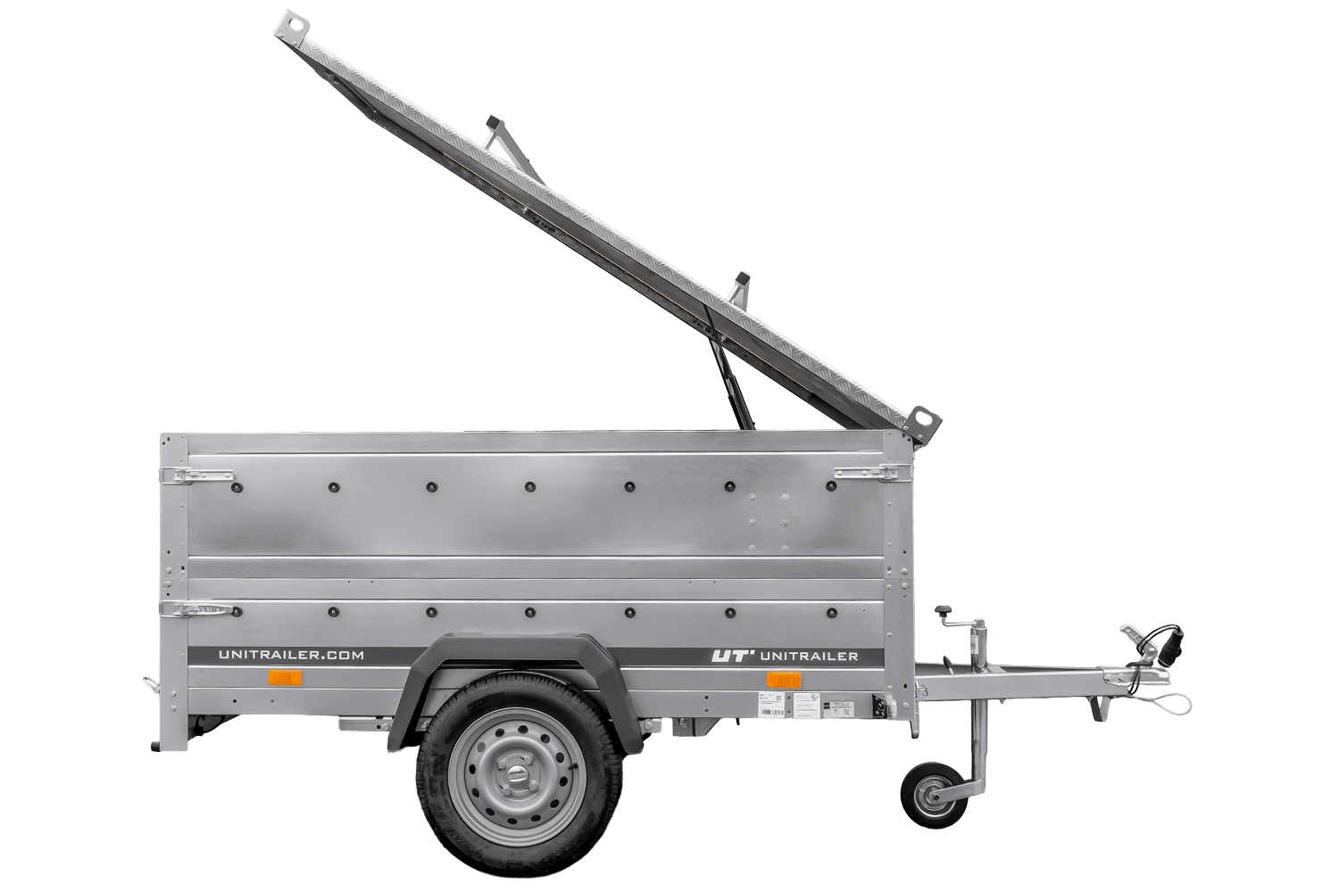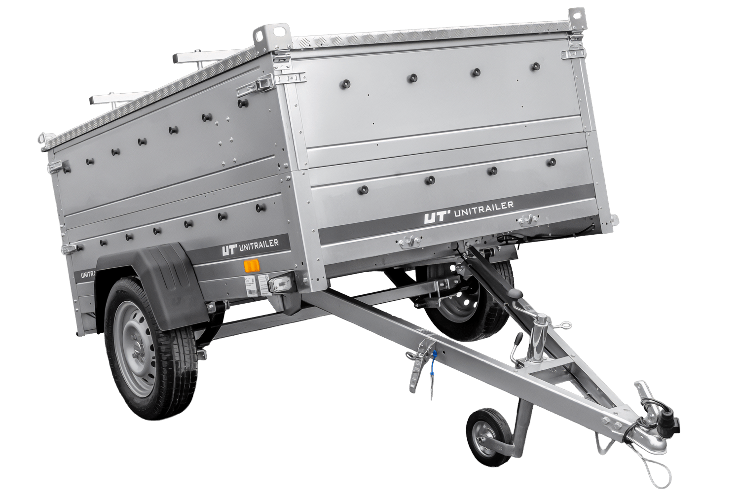 Leichtanhänger auf Federn 200x125 UNITRAILER GARDEN 201/R KIPP mit BIS-Seiten und Aluminiumabdeckung