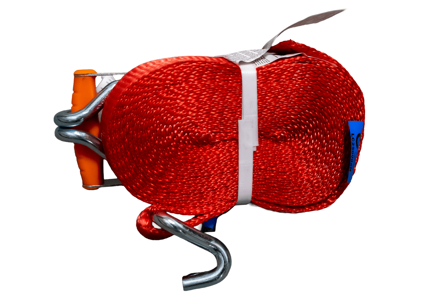 Der rote HILLS-Ratschengurt besteht aus zwei Teilen: einem kürzeren Teil mit Ratsche und Haken sowie einem längeren Teil mit Gurtband und Haken. Die Gesamtlänge des Gurtes inklusive Gurtband und Schnalle beträgt 8 Meter und bietet somit ausreichend Spielraum zum Sichern größerer Lasten. Das 50 mm breite Gurtband sorgt für hohen Anpressdruck. Mit einer robusten Spannkraft von bis zu 5 Tonnen (5000 daN) eignet sich der Gurt ideal zum Sichern schwerer Lasten.