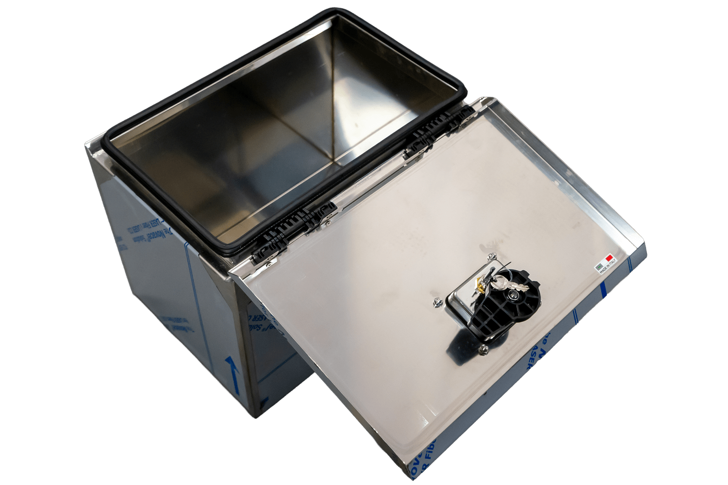Die Box besteht aus poliertem Edelstahl , der sich durch außergewöhnliche Langlebigkeit, ansprechendes Design und Korrosionsbeständigkeit auszeichnet. Ein Edelstahl-Next™-Verschluss gewährleistet sicheren Halt und optimalen Schutz des Inhalts. Dank ihrer vibrations- und stoßfesten Konstruktion eignet sich die Box ideal für den intensiven Einsatz unter anspruchsvollen Bedingungen. Der Deckel ist mit einer Dichtung versehen, die absolute Dichtigkeit garantiert und das Eindringen von Wasser und Staub verhindert . Diese Konstruktion schützt Werkzeuge und Ausrüstung effektiv vor schädlichen äußeren Einflüssen – besonders wichtig bei intensivem Einsatz auf Baustellen oder unter extremen Wetterbedingungen.