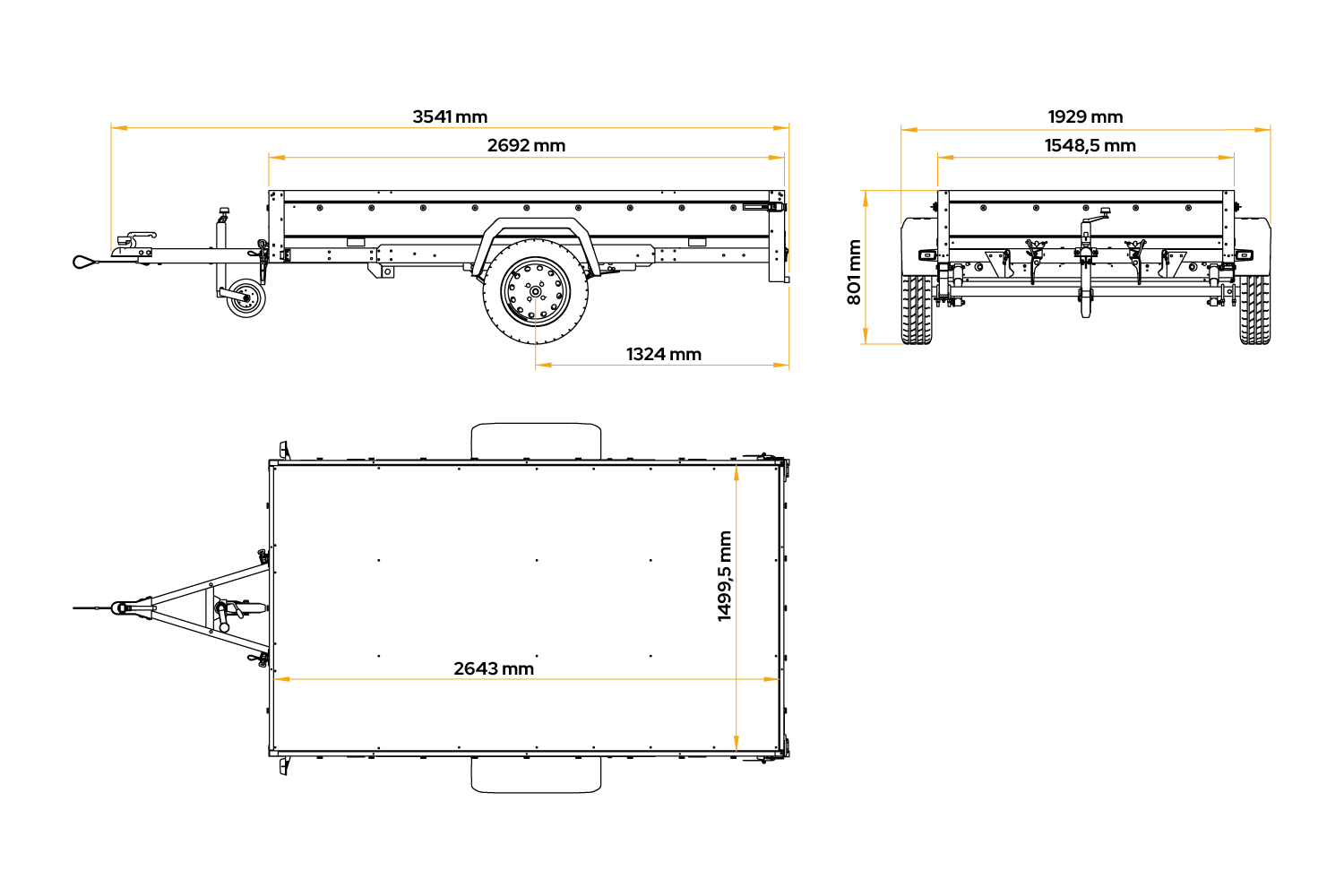 Einachsanhänger auf Blattfedern 264x150 UNITRAILER GARDEN 265/R KIPP