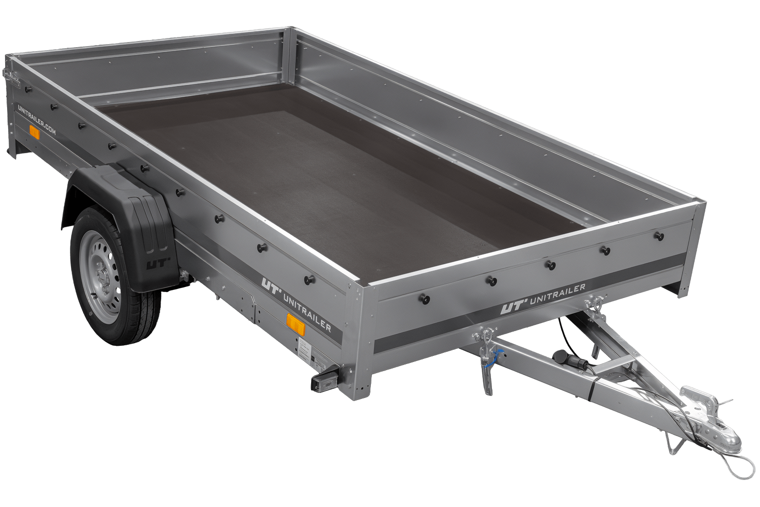 Der UNITRAILER GARDEN 265/R KIPP Anhänger verfügt über einen Rahmen und Seitenwände aus verzinktem Stahl , was eine hohe Korrosionsbeständigkeit und lange Lebensdauer gewährleistet. Ein 9 mm starker, wasserfester Sperrholzboden mit rutschfester Beschichtung sorgt für sicheren Transport bei allen Witterungsbedingungen. Die gesamte Konstruktion ist zusätzlich durch Stützbalken unter dem Boden verstärkt, um ein Durchhängen unter schwerer Last zu verhindern.