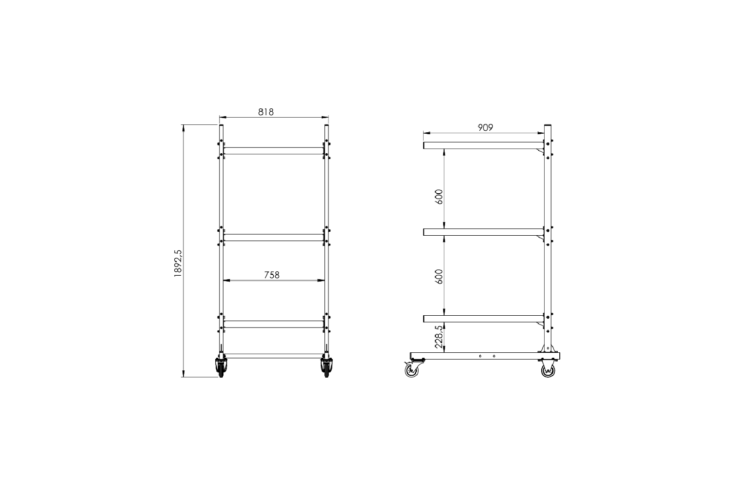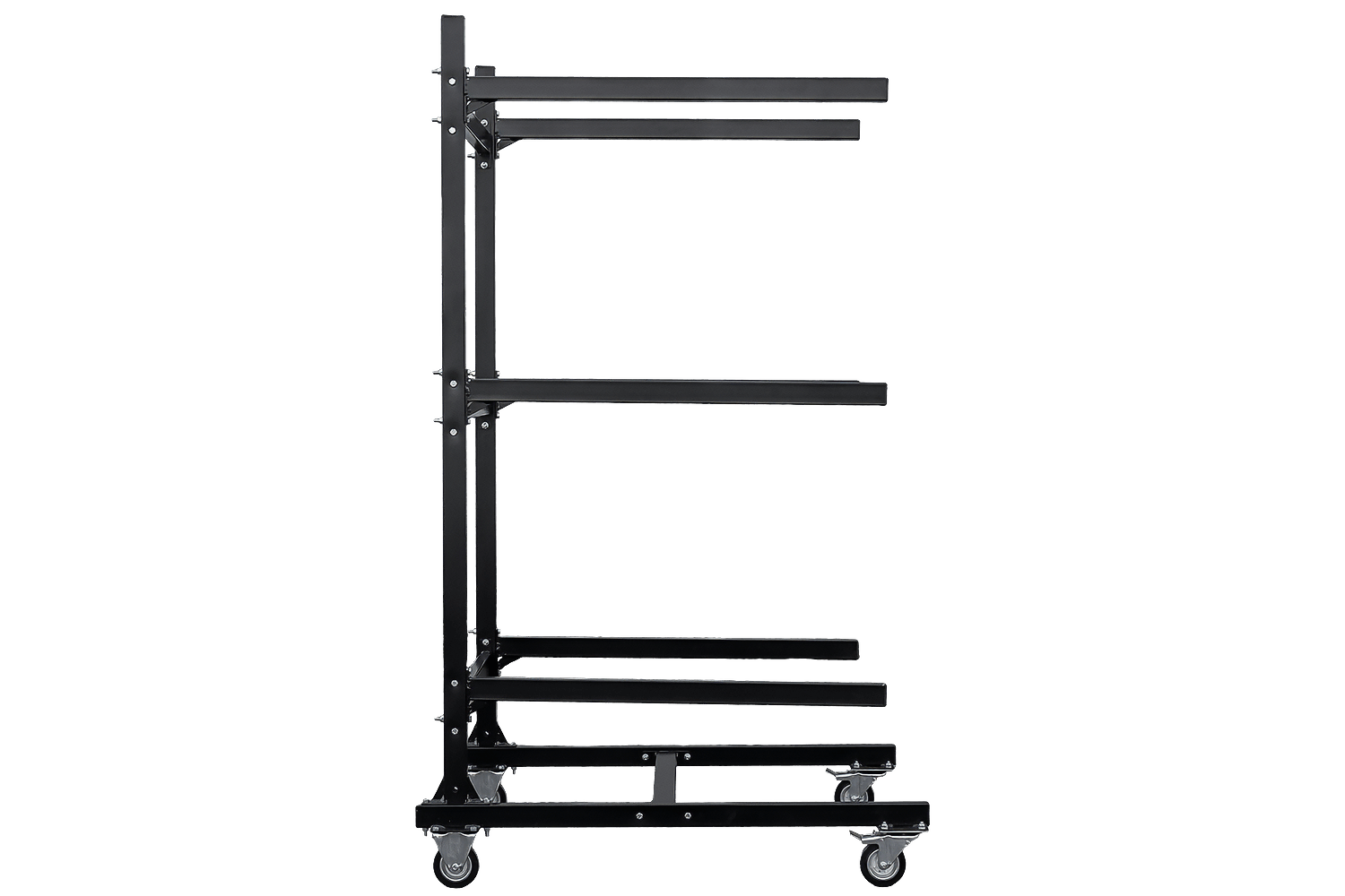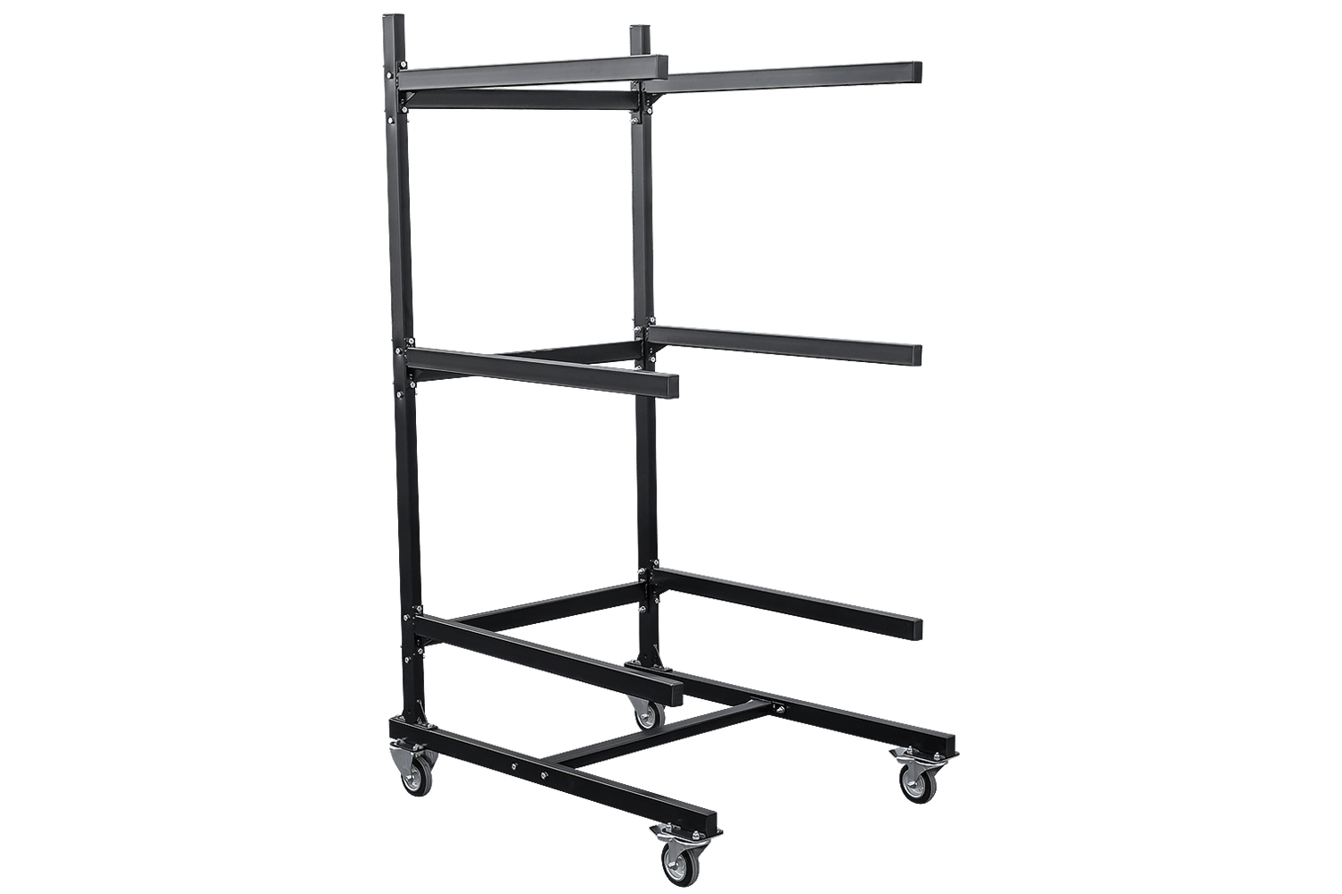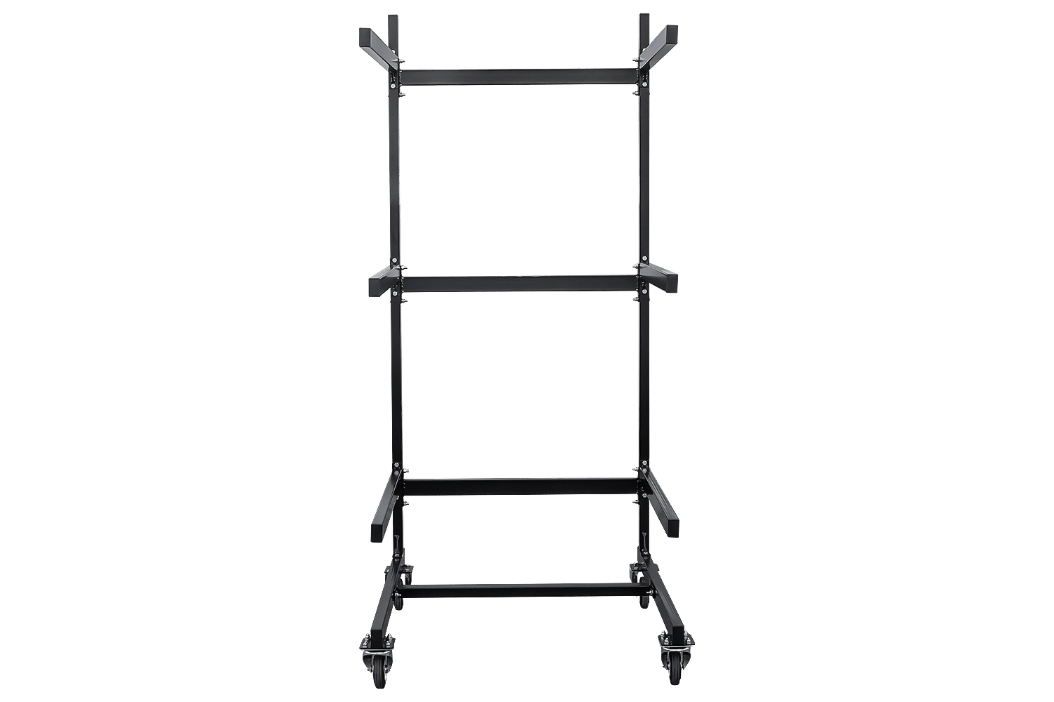 Das Gestell bietet drei Ebenen für drei Dachboxen und ermöglicht so die gleichzeitige Aufbewahrung mehrerer Boxen in einer übersichtlichen Struktur. Dank der Rollen lässt sich das Gestell leicht bewegen, was den Komfort erhöht und den Zugriff auf das Zubehör erleichtert. Mit einer Höhe von 1892,5 mm , einer Breite von 818 mm und einer Tiefe von 909 mm gewährleistet das Gestell eine optimale Raumausnutzung.
