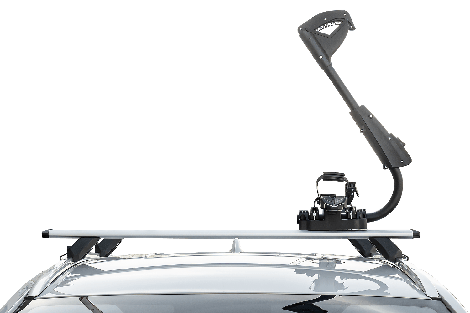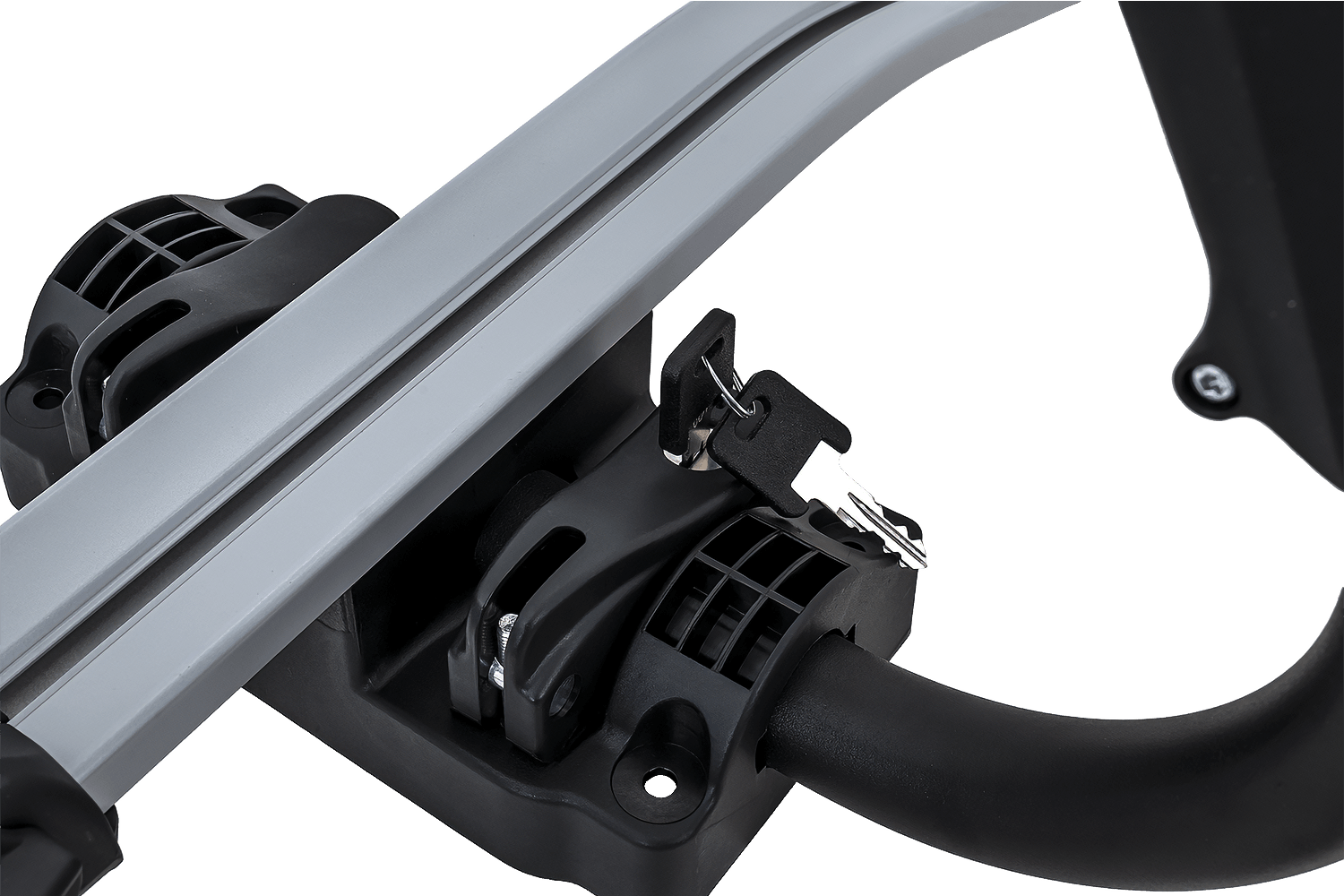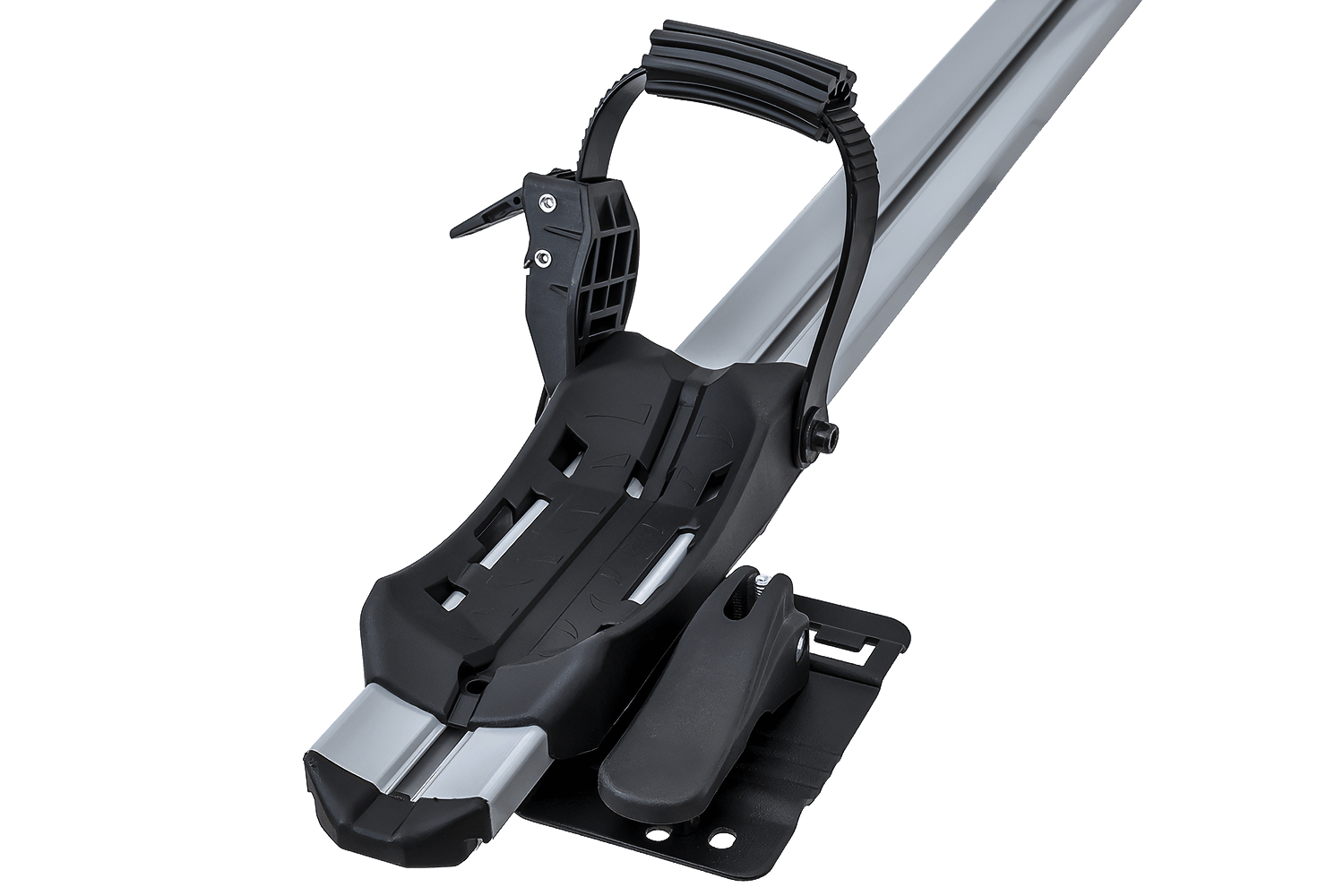 Das Fahrrad wird mit einer universellen, gummierten Klemme gesichert, die den Rahmen fest umschließt und vor Kratzern schützt. Die Halterung ist für Rahmen mit einem Durchmesser von 22–80 mm geeignet und somit mit einer Vielzahl von Fahrradtypen kompatibel, auch mit Modellen mit dickeren oder nicht standardmäßigen Rahmen. Dank der Konstruktion kann die Halterung wahlweise links oder rechts am Fahrzeug montiert werden – dazu müssen lediglich Arm und Radstützen umpositioniert werden.