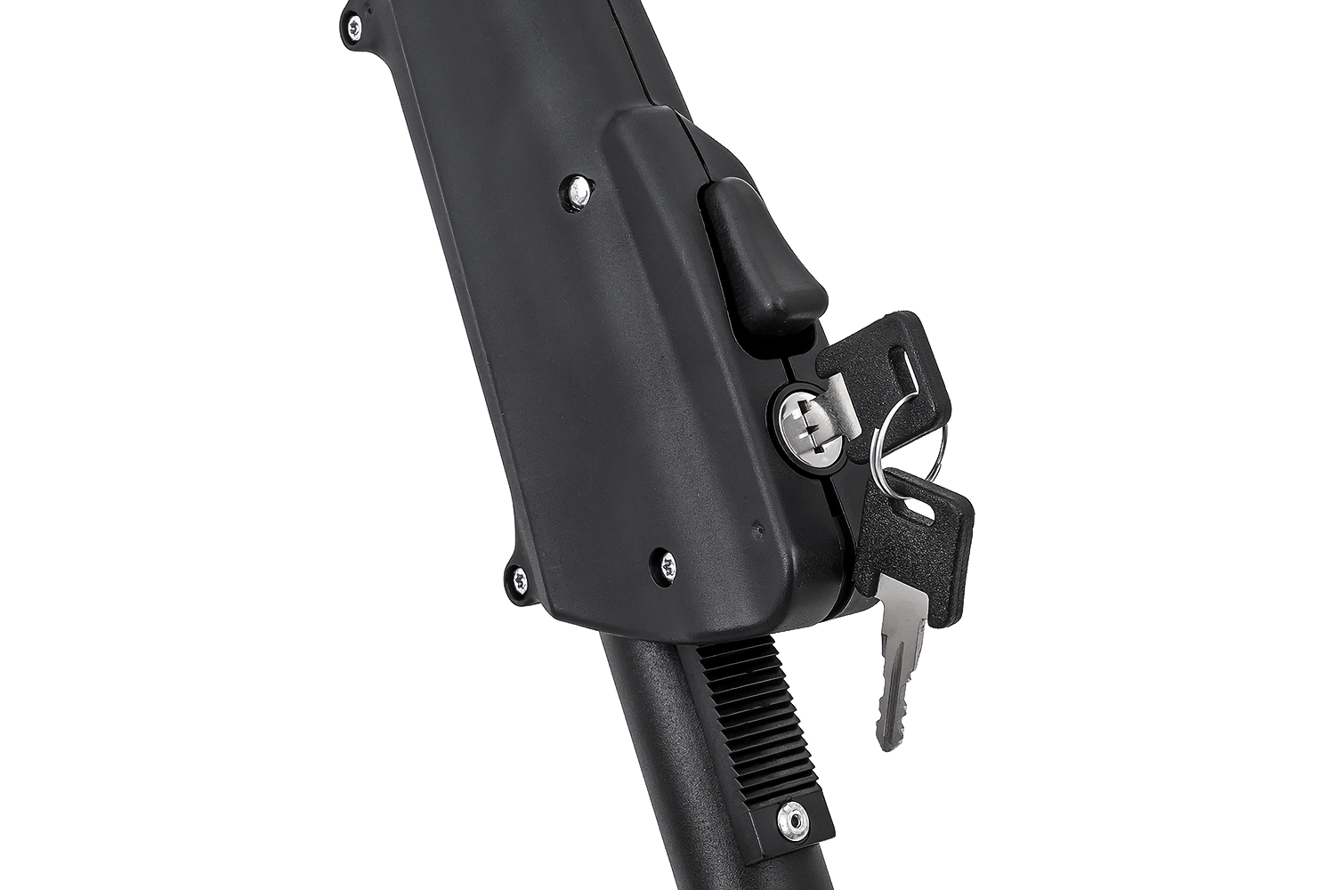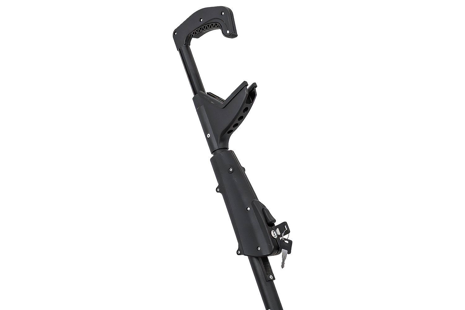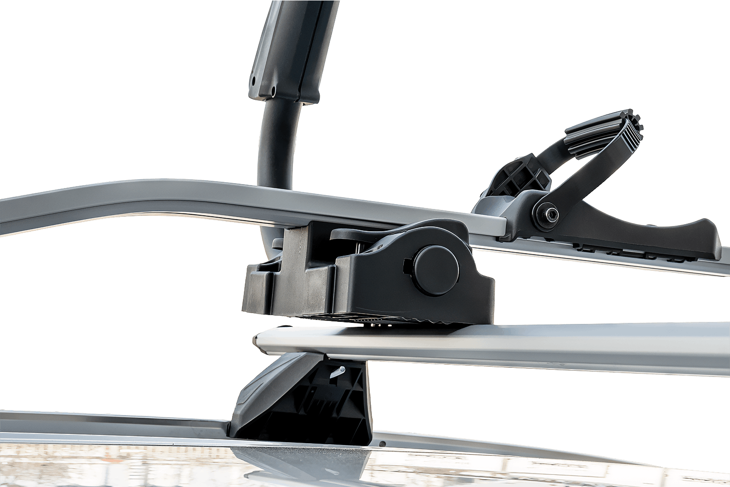 Das Fahrrad wird mit einer universellen, gummierten Klemme gesichert, die den Rahmen fest umschließt und vor Kratzern schützt. Die Halterung ist für Rahmen mit einem Durchmesser von 22–80 mm geeignet und somit mit einer Vielzahl von Fahrradtypen kompatibel, auch mit Modellen mit dickeren oder nicht standardmäßigen Rahmen. Dank der Konstruktion kann die Halterung wahlweise links oder rechts am Fahrzeug montiert werden – dazu müssen lediglich Arm und Radstützen umpositioniert werden.