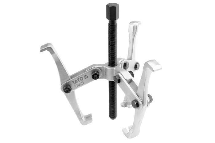 - Der aus robustem Stahl gefertigte Dreiarmabzieher YT-2521 (150 mm) ermöglicht das sichere Entfernen von Lagern, Zahnrädern und Buchsen. Dank seiner drei Backen bietet er einen sicheren Halt, und mit einer Zugkraft von 5 Tonnen bewältigt er selbst festsitz