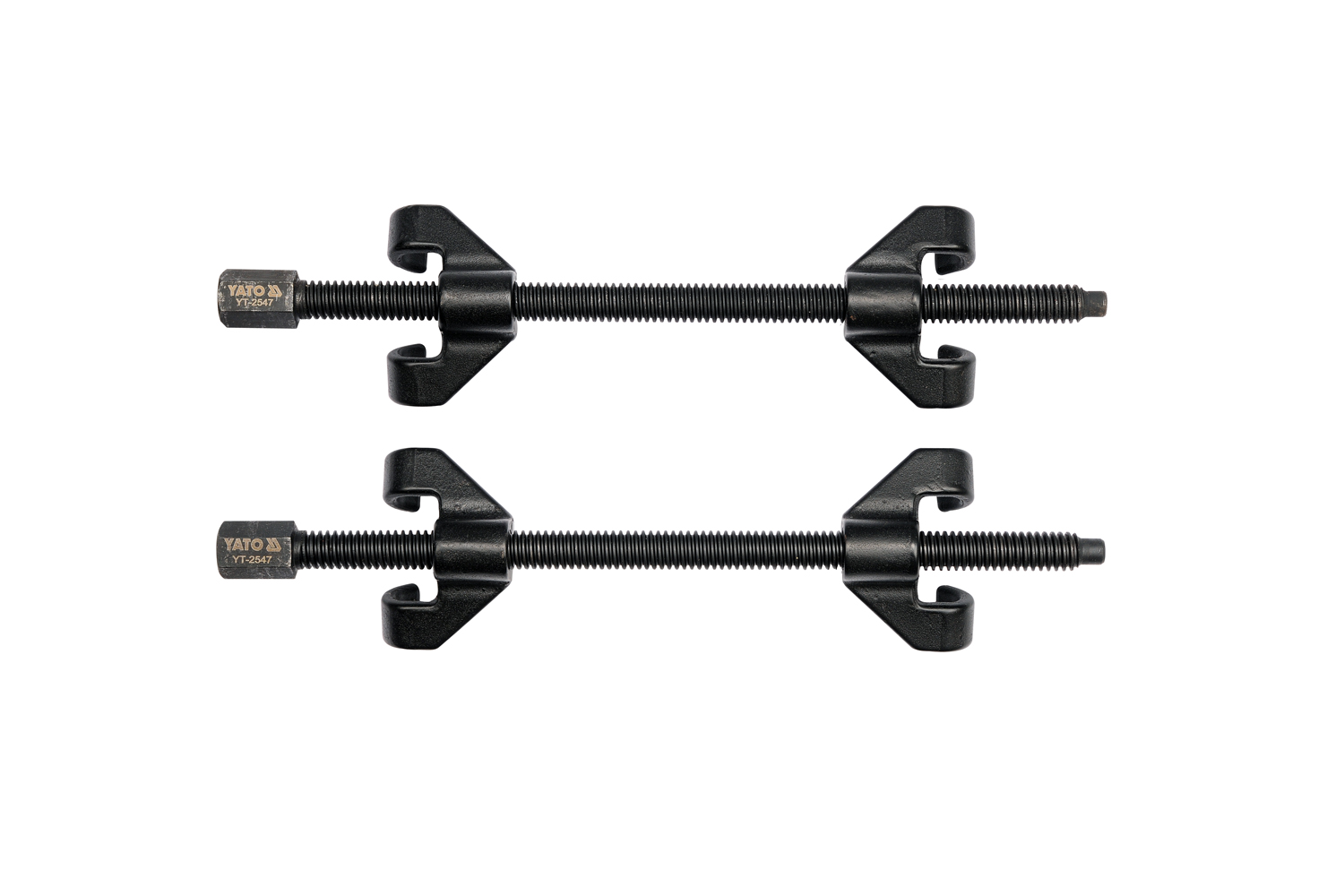 - Das zweiteilige Federabzieher-Set YT-2547 ermöglicht das sichere Spannen und Ausbauen von Fahrwerksfedern, einschließlich MacPherson-Federbeinen. Gehärteter Stahl, Doppelarmgriffe und präzises Gewinde gewährleisten einen stabilen und kontrollierten Betrie
