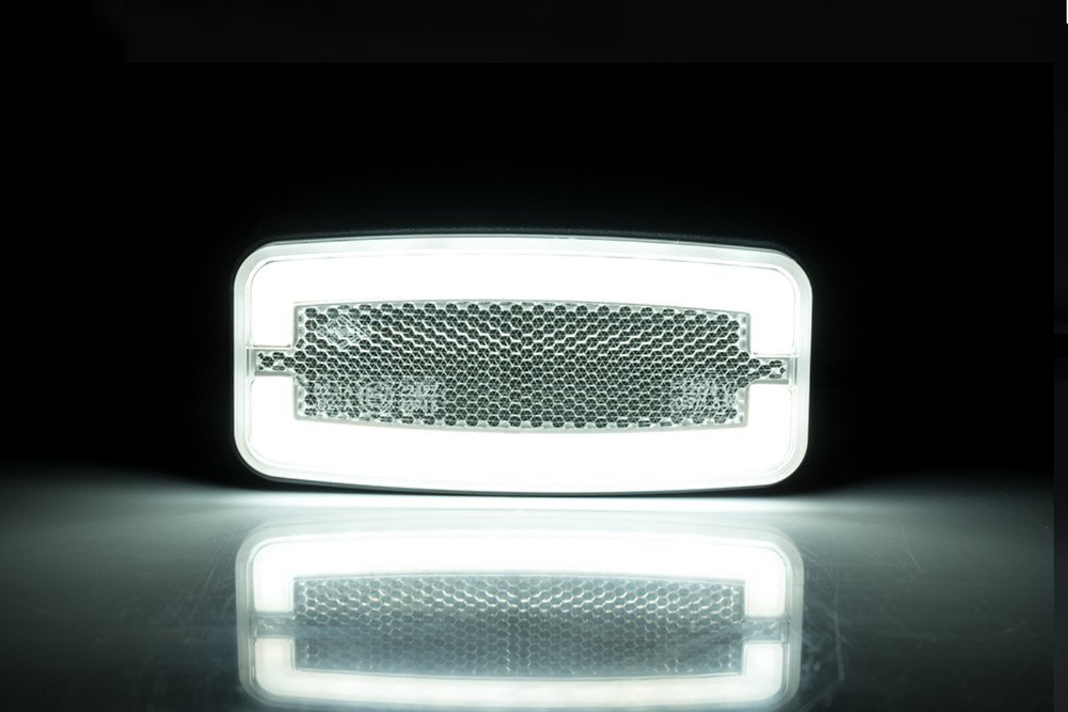Die Lampe hat zwei Funktionen: Frontpositionsleuchte in NEON-Ausführung (weiß), die dank moderner LED-Technologie und Leuchteffekt für hervorragende Sichtbarkeit des Fahrzeugs von vorne sorgt und so die Sicherheit bei Fahrten in der Dunkelheit und bei schwierigen Wetterbedingungen erhöht. ; und ein Reflektor , der die Sicherheit zusätzlich durch verbesserte Sichtbarkeit erhöht .