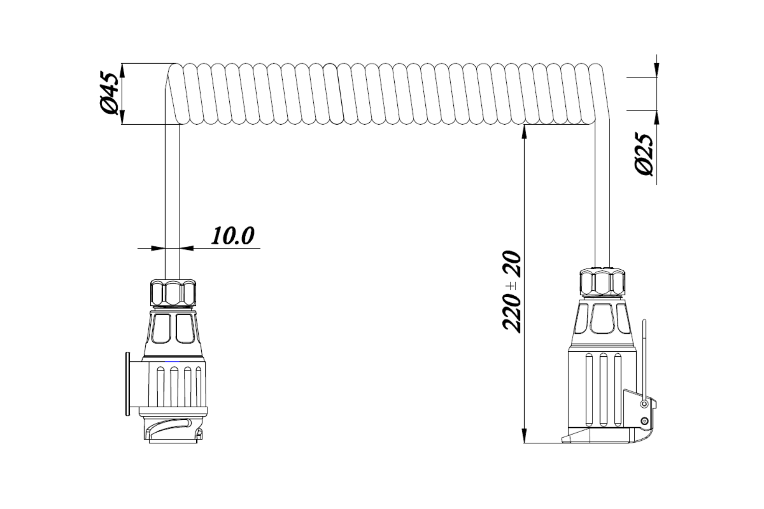 Ein spiralförmiges Elektrokabel mit Steckern ist ein Schlüsselelement der Beleuchtungsanlage von Pkw-Anhängern, Traktoren, Landmaschinen und Sondergeräten . Es überträgt zuverlässig Signale an Positionsleuchten, Bremslichter, Blinker und weitere Beleuchtungskomponenten und trägt so direkt zur Sicherheit und Sichtbarkeit des Fahrzeugs im Straßenverkehr bei. Die Spiralform gewährleistet Flexibilität und Widerstandsfähigkeit gegen Beschädigungen beim Manövrieren, während robuste 7-polige Stecker eine stabile elektrische Verbindung sicherstellen. Dank seiner optimalen Länge und des durchdachten Designs ist das Kabel einfach zu installieren und mit vielen Fahrzeug- und Anhängertypen kompatibel.