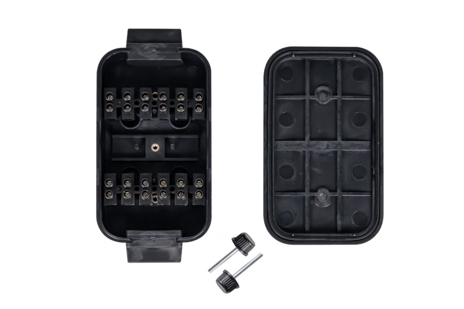 Der 12-polige Elektroverteilerkasten E4030 ist eine robuste und praktische Lösung zur Organisation und zum Schutz elektrischer Anschlüsse in Lkw und Nutzfahrzeugen. Gefertigt aus widerstandsfähigem, schwarzem Kunststoff, ist er unempfindlich gegenüber mechanischen Beschädigungen und Witterungseinflüssen. Sein einfaches Design und die mehrfache Öffnungsmöglichkeit vereinfachen Wartung und Systemerweiterung erheblich.