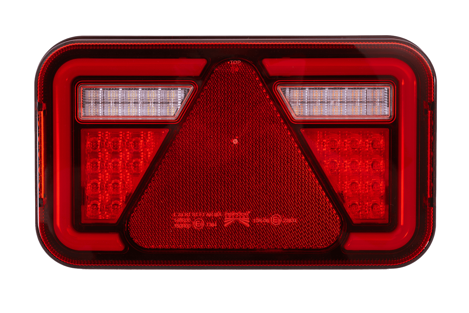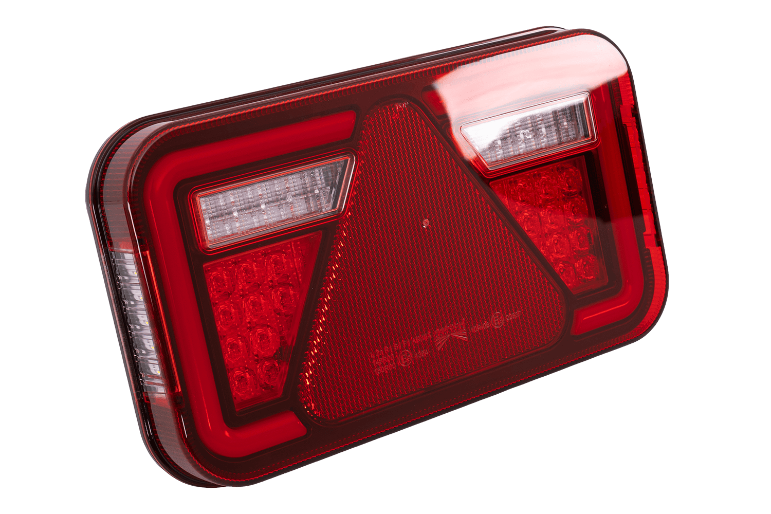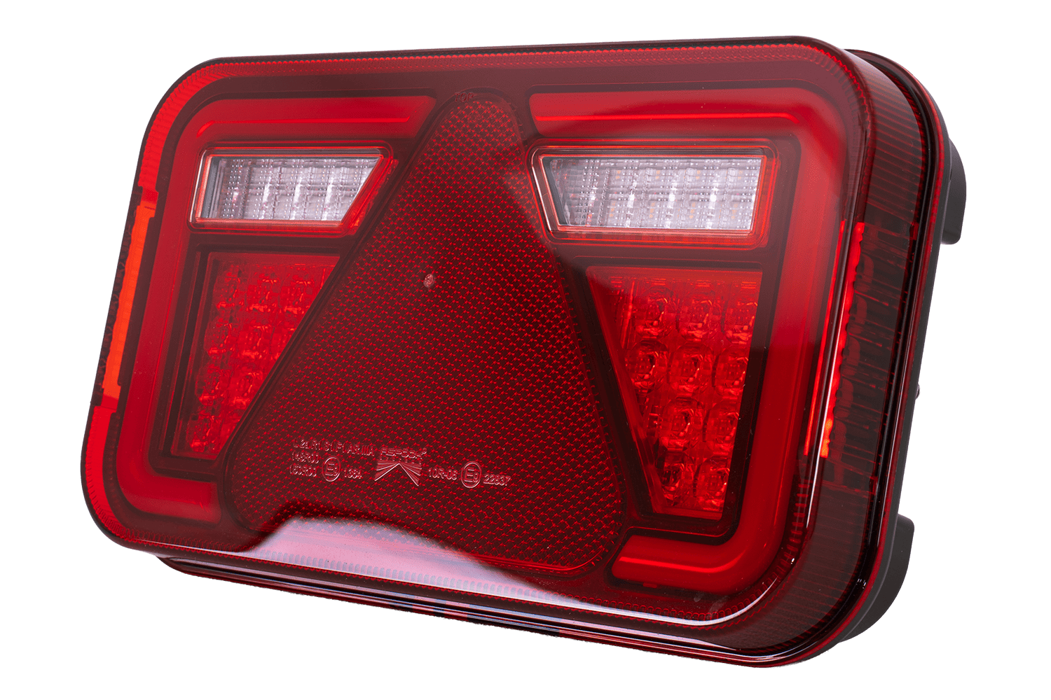 • Die MULTILED IV ASPÖCK Rückleuchte ist für die Montage auf der rechten Seite konzipiert. Sie bietet sechs Funktionen: Positionslicht, Bremslicht, Rückfahrlicht, Blinker, Kennzeichenbeleuchtung und ein reflektierendes Dreieck.