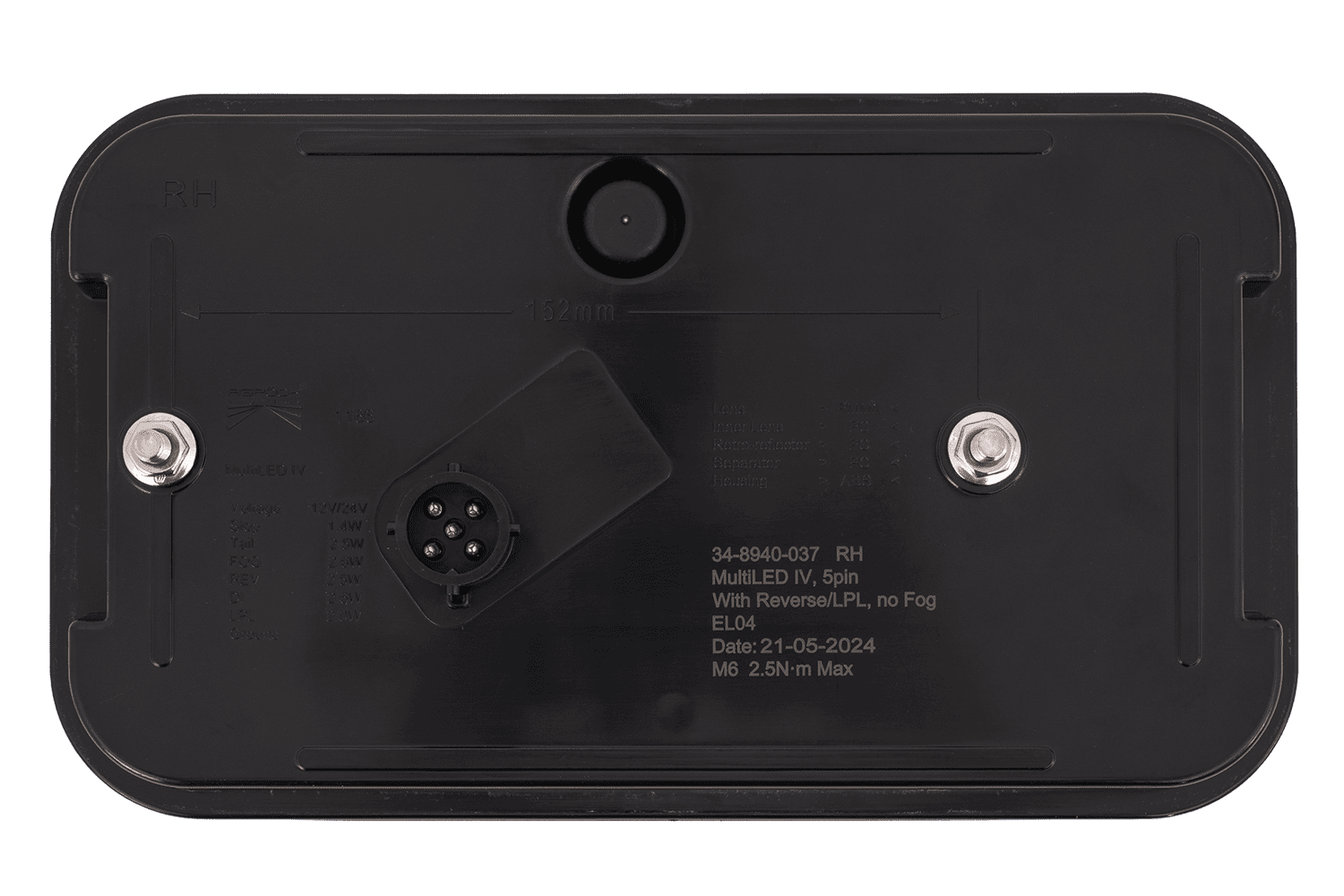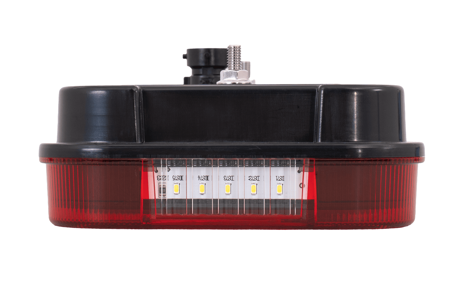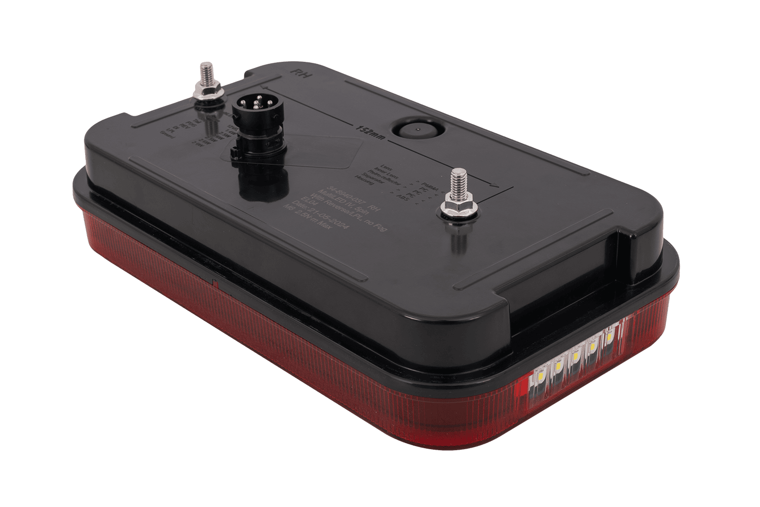 • Die MULTILED IV ASPÖCK Rückleuchte ist für die Montage auf der rechten Seite konzipiert. Sie bietet sechs Funktionen: Positionslicht, Bremslicht, Rückfahrlicht, Blinker, Kennzeichenbeleuchtung und ein reflektierendes Dreieck.