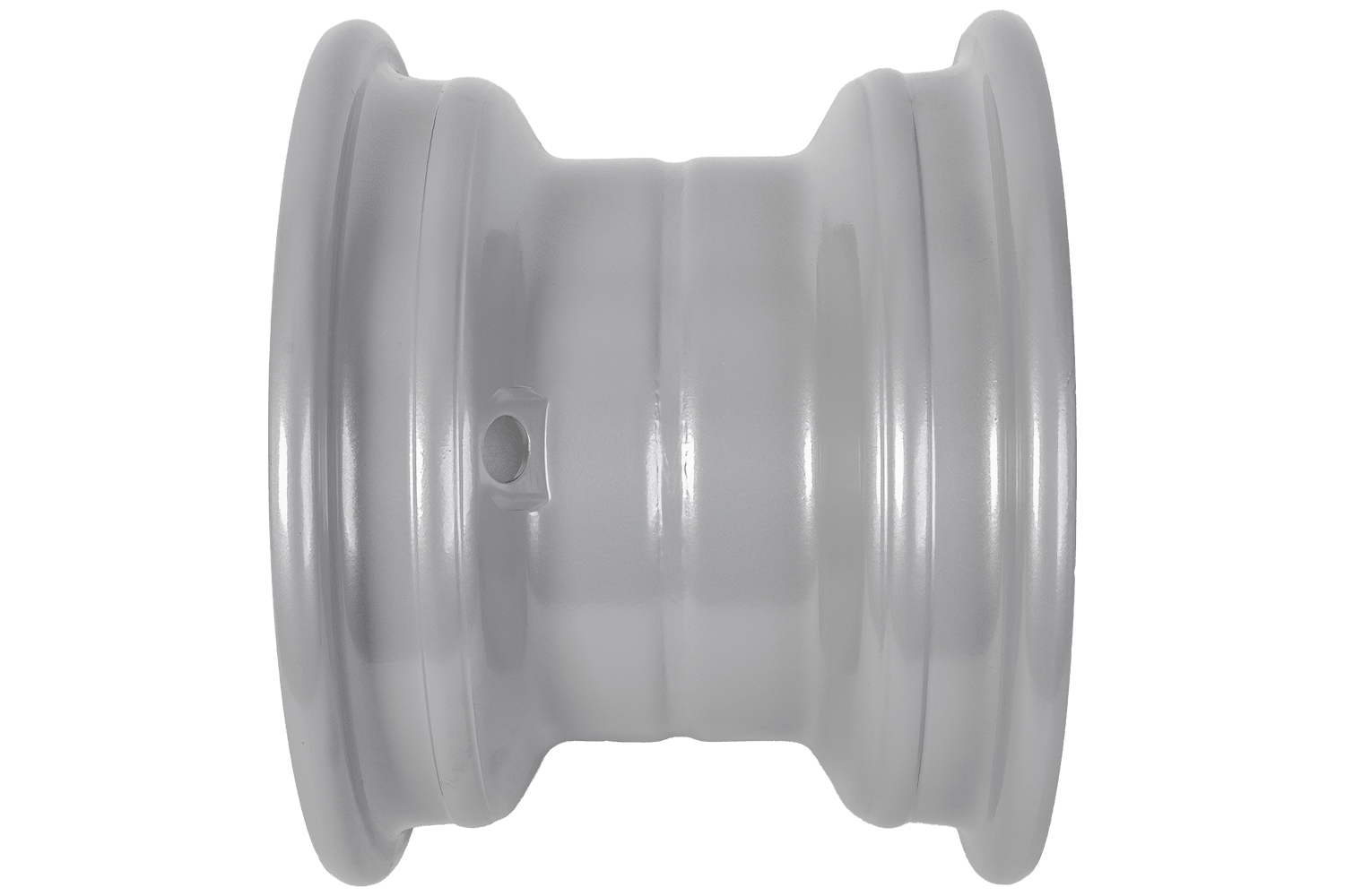 Bei dieser Felge hat die Nabenbohrung einen Durchmesser von 57 mm , der Innendurchmesser der Achse beträgt ca. 25 mm . Diese Parameter sind wichtig für den korrekten Sitz der Felge auf der Achse und einen stabilen Lauf des Rades. Ein korrekter Felgensitz beeinflusst die Sicherheit, die Leichtgängigkeit und die Lebensdauer der gesamten Baugruppe.