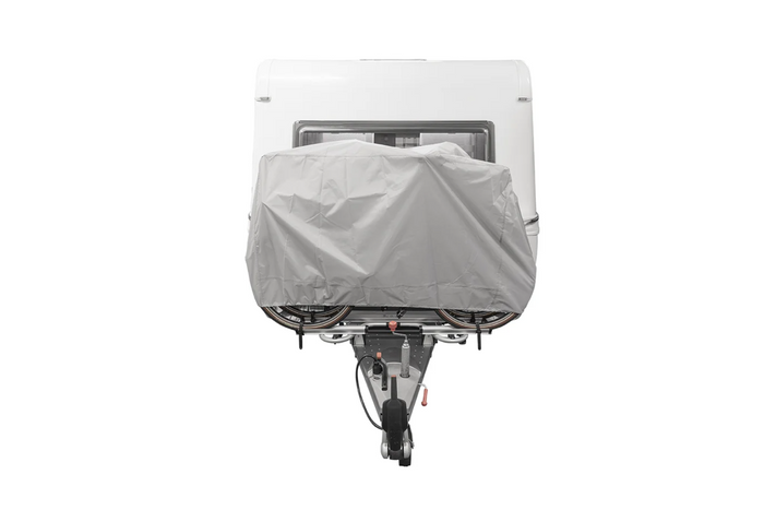Ein Kordelzug am unteren Rand der Abdeckung ermöglicht eine einfache und sichere Befestigung am Fahrrad und verhindert ein Verrutschen während der Fahrt. Das XL-Modell bietet Platz für zwei Fahrräder, inklusive E-Bikes , und zeichnet sich durch ausreichend Stauraum und einen passgenauen Sitz aus.