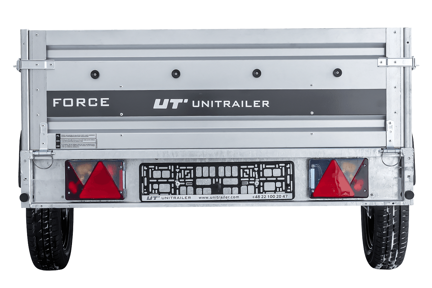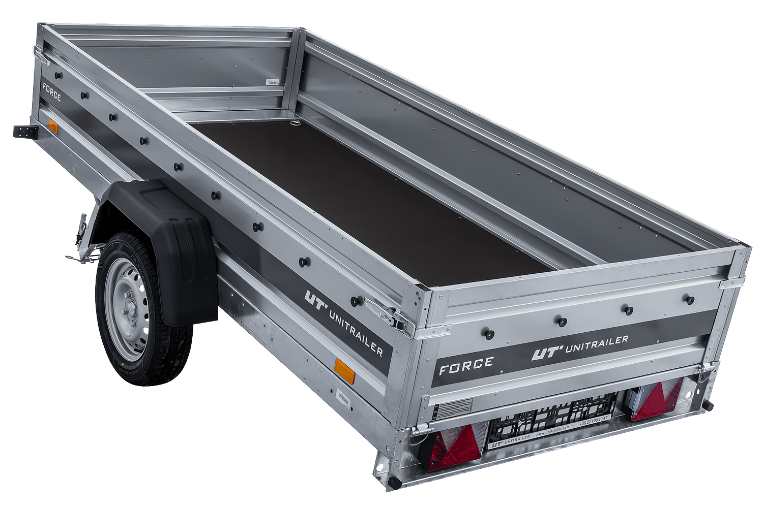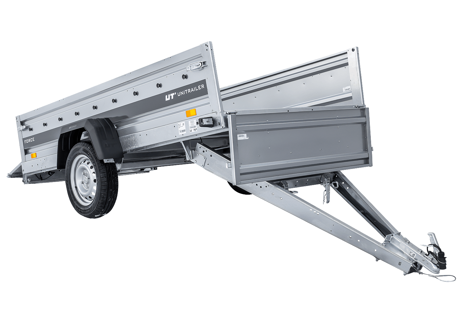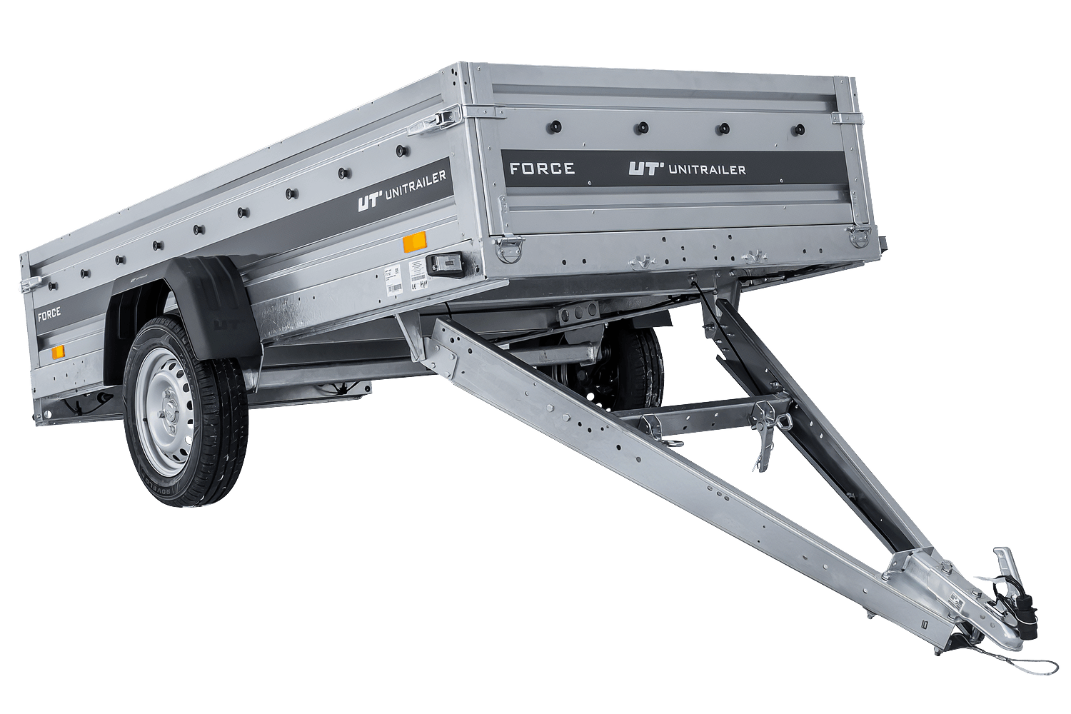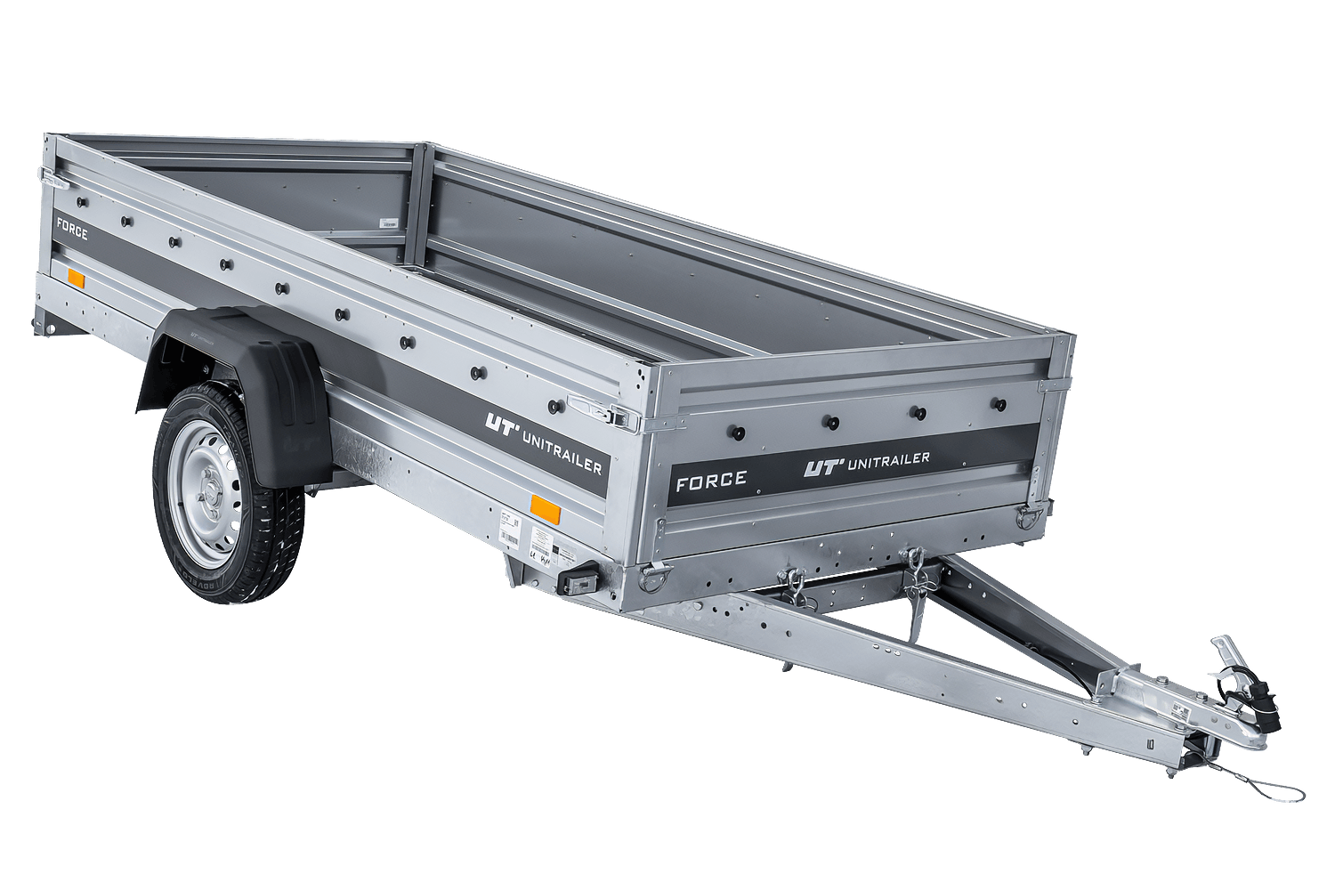 Alle vier Seiten sind abnehmbar, was dem Benutzer vielfältige Einsatzmöglichkeiten eröffnet. Der Unitrailer Force ist ein vielseitiges Transportgerät.