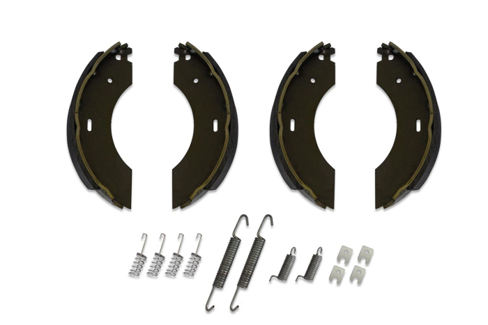 Polnischer Bremsbackensatz passend für AL-KO- Achsen. Die Bremsbacken passen auf AL-KO-Bremstrommeln 2360/2361 . Der Satz enthält die Komponenten für eine komplette Achse (zwei Räder): Bremsbacken (4 Stück), Haltefedern (4 Stück), Rückholfedern (2 Stück) und Haltefederscheiben (4 Stück).