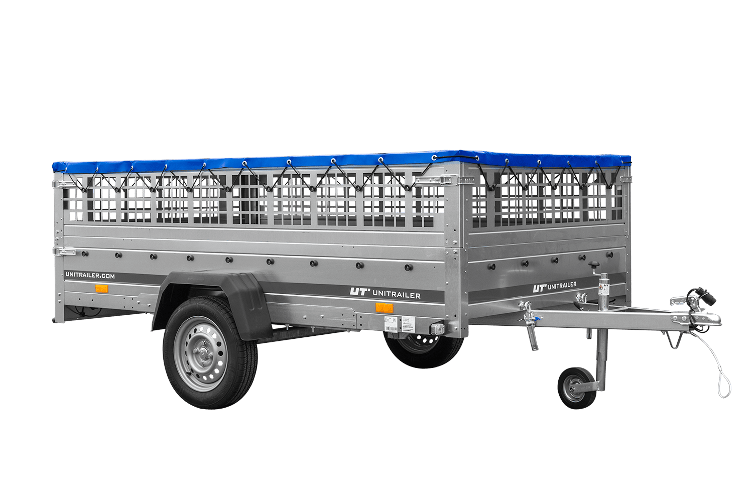 - Der UNITRAILER GARDEN 265/R KIPP Anhänger verfügt über Blattfederung und Stoßdämpfer, Seitenwände aus Netzgewebe, einen H-0-Rahmen und eine blaue Abdeckung. Er bietet einen großen, breiten Laderaum und schützt Ihr Gepäck vor Regen und Schmutz.