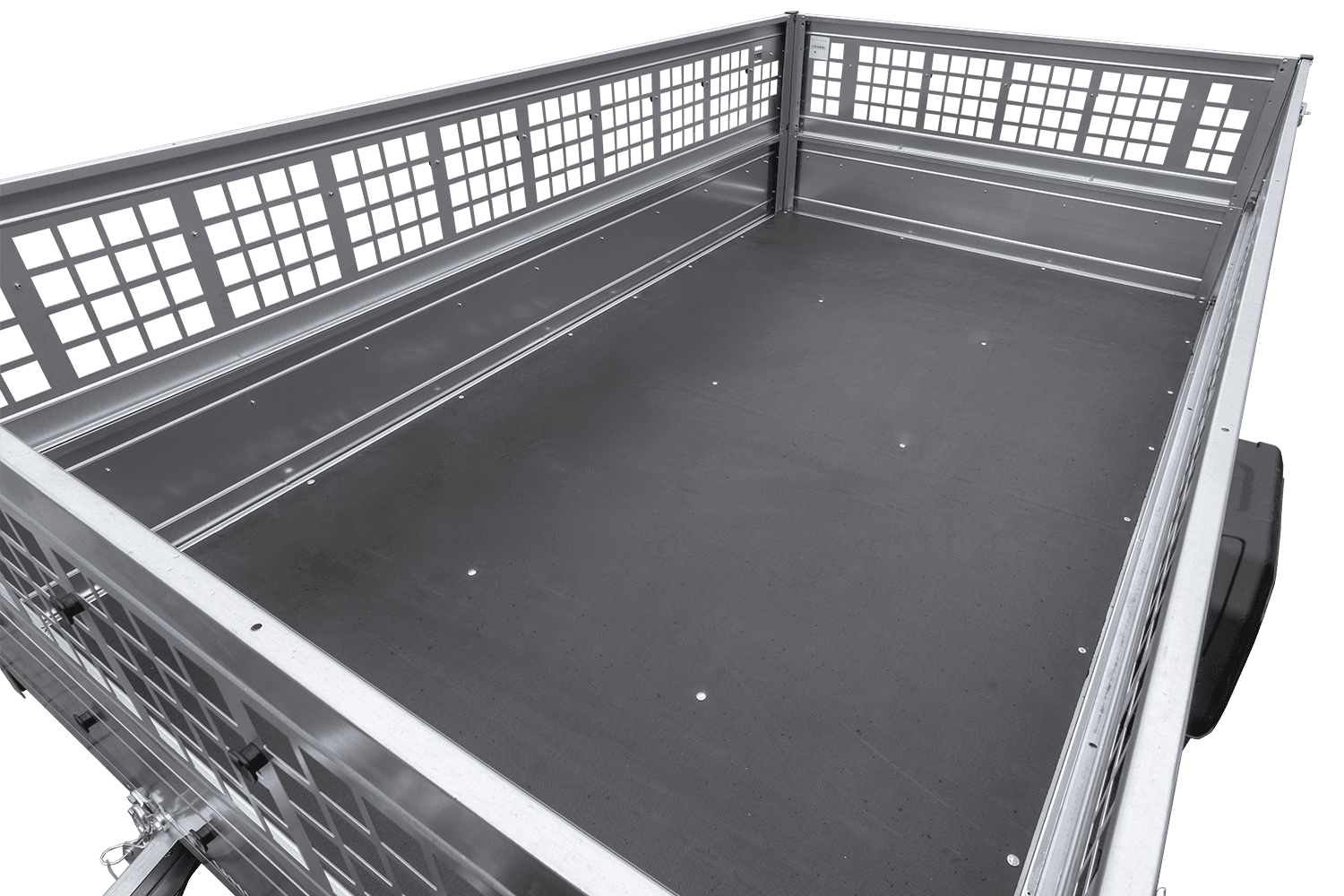 Der verzinkte Stahlrahmen und die Seitenwände sind korrosionsbeständig und halten starker Beanspruchung stand. Der wasserdichte, 9 mm starke Sperrholzboden mit rutschfester Beschichtung erhöht die Transportsicherheit unter verschiedensten Bedingungen. Verstärkungen unter dem Boden stabilisieren die Konstruktion auch bei hohen Belastungen.