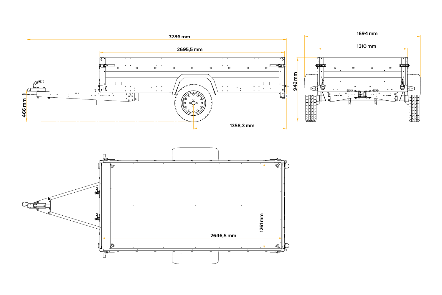 Dank seines modularen Designs, der Möglichkeit, die hinteren und vorderen Seiten zu öffnen, und einer großzügigen Ladefläche passt sich der Anhänger Ihnen an, nicht umgekehrt.
