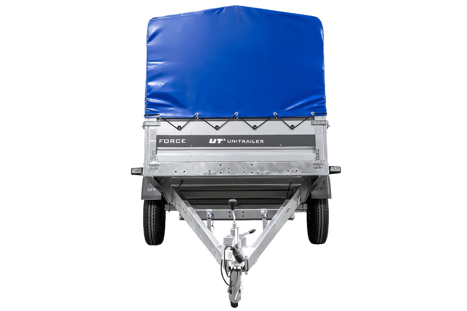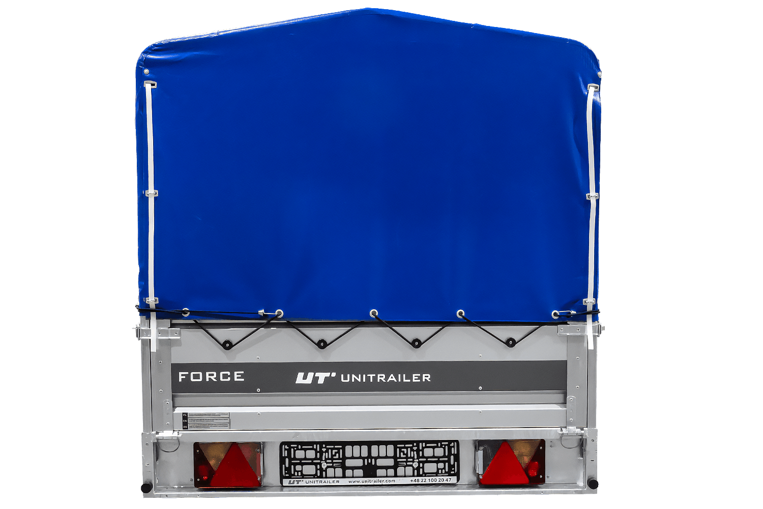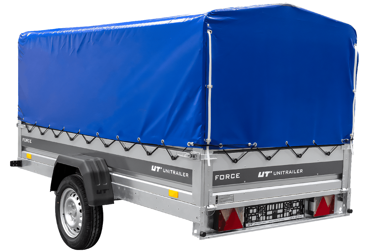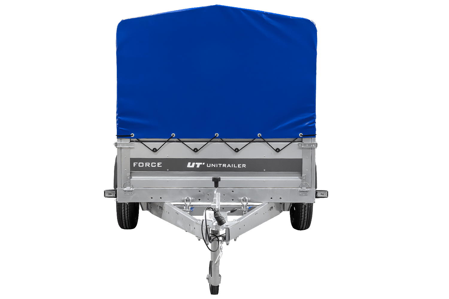 - Der UNITRAILER FORCE 264 KIPP Anhänger verfügt über einen H-800-Rahmen und eine blaue Plane. Die vergrößerte Ladefläche und die robuste Schweißkonstruktion gewährleisten eine komfortable Nutzung.