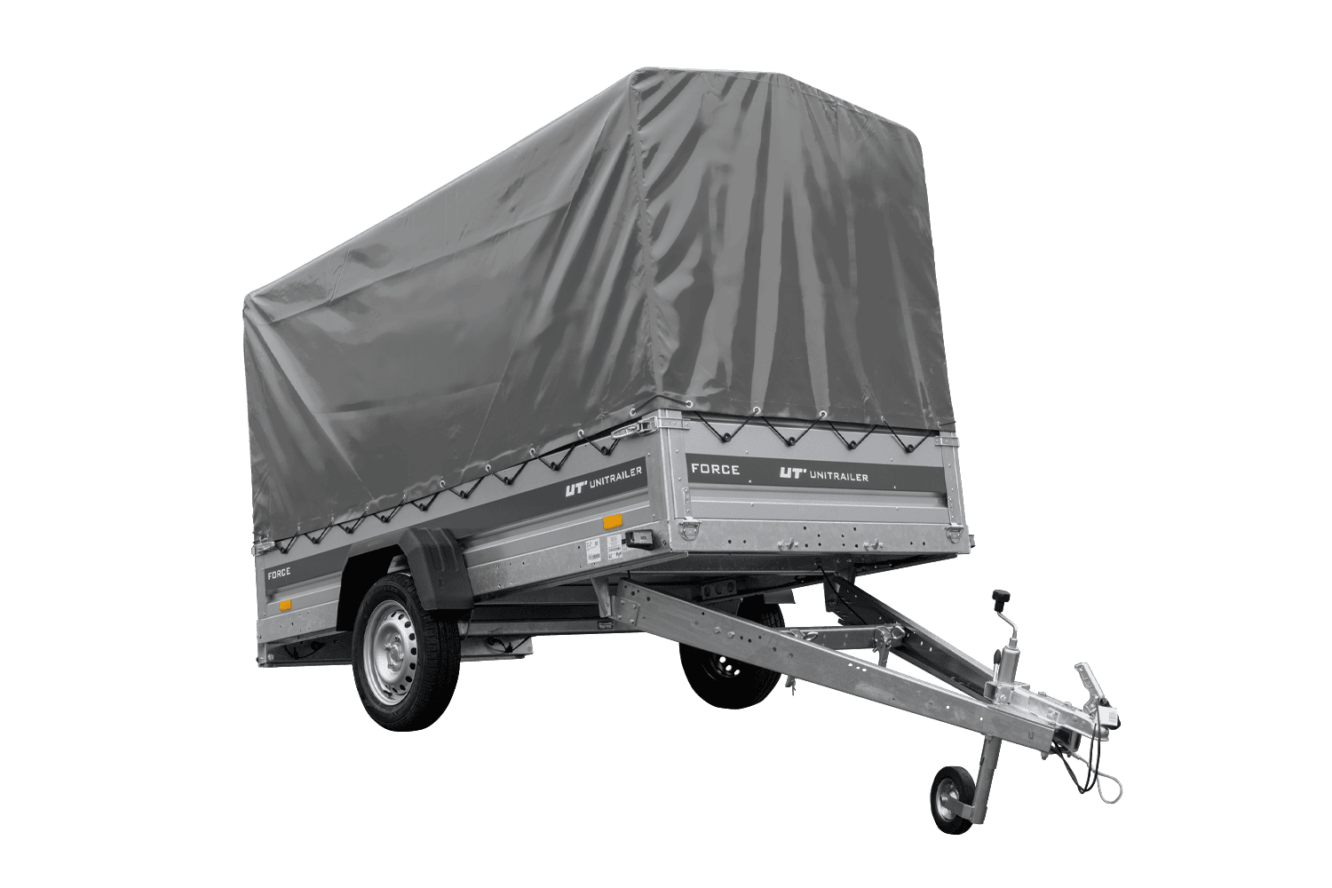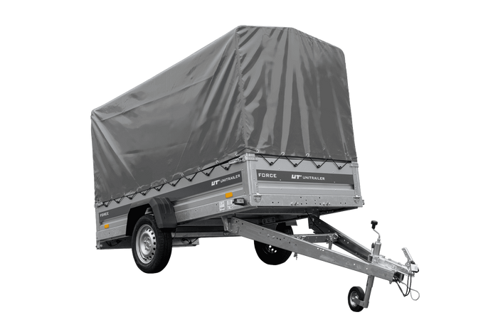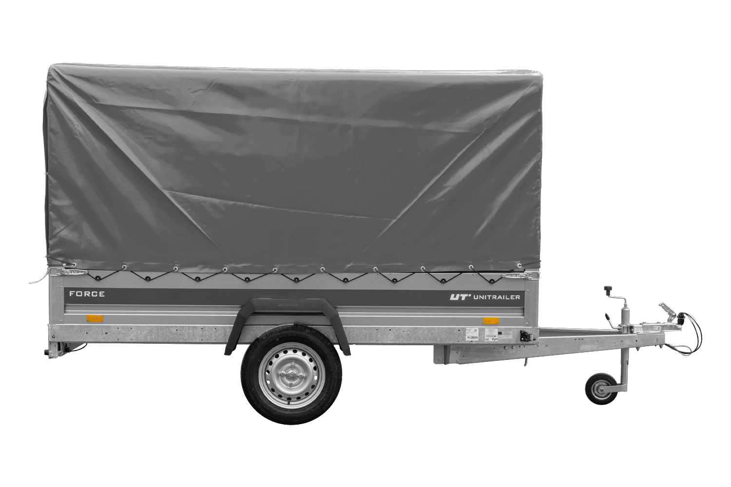 - Der UNITRAILER FORCE 264 KIPP Anhänger mit H-1100 Rahmen und grauer Plane bietet maximalen Platz und optimalen Ladungsschutz. Seine große Ladefläche und die geschweißte Konstruktion gewährleisten komfortable Fahrt auch unter schwierigsten Bedingungen.