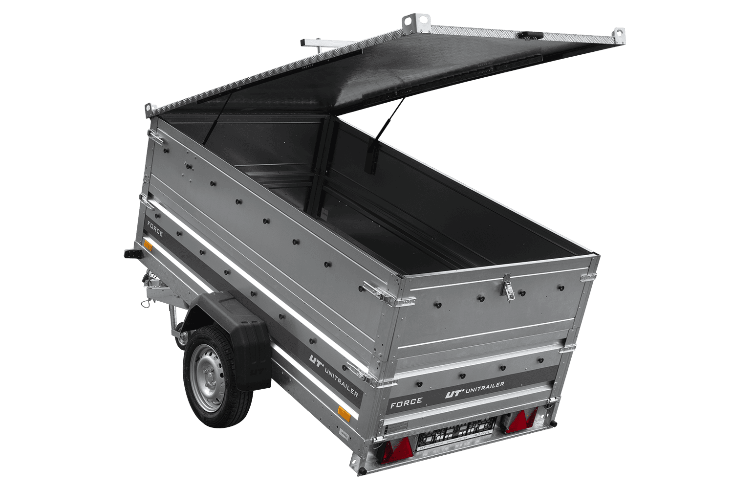 Alle vier Seiten sind abnehmbar, was dem Benutzer vielfältige Einsatzmöglichkeiten eröffnet. Der Unitrailer Force ist ein vielseitiges Transportgerät.
