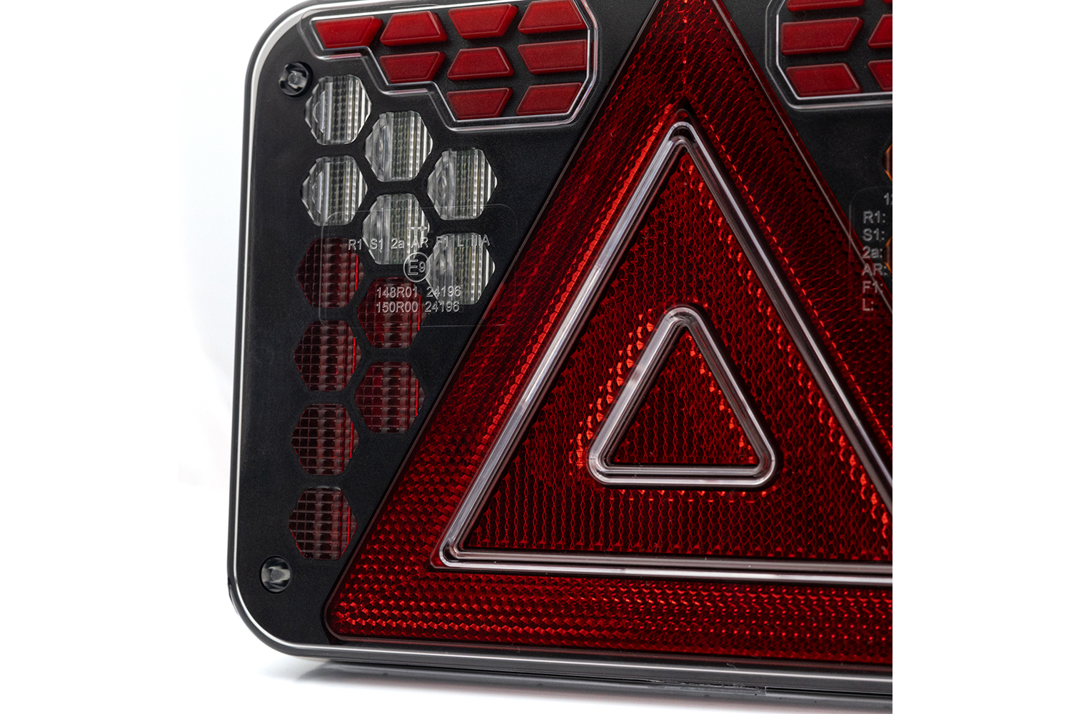 Diese E9- geprüfte Rückleuchte entspricht den ECE-Normen R10, R148 und R150 und erfüllt somit die europäischen Anforderungen an Sicherheit und Qualität der Fahrzeugbeleuchtung. ECE R10 garantiert elektromagnetische Verträglichkeit und verhindert Störungen der Fahrzeugelektronik. ECE R148 zertifiziert die Wirksamkeit von Signalleuchten wie Positions-, Brems-, Richtungs- und Rückfahrscheinwerfern und gewährleistet deren Sichtbarkeit und die Einhaltung der Normen. Die ECE-R150-Norm regelt die Anforderungen an Reflektoren und verbessert so die Sichtbarkeit von Fahrzeugen bei Nacht oder schlechten Lichtverhältnissen. Diese Lampe ist eine vielseitige und zuverlässige Lösung, ideal für Nutzfahrzeuge, Anhänger und Maschinen .
