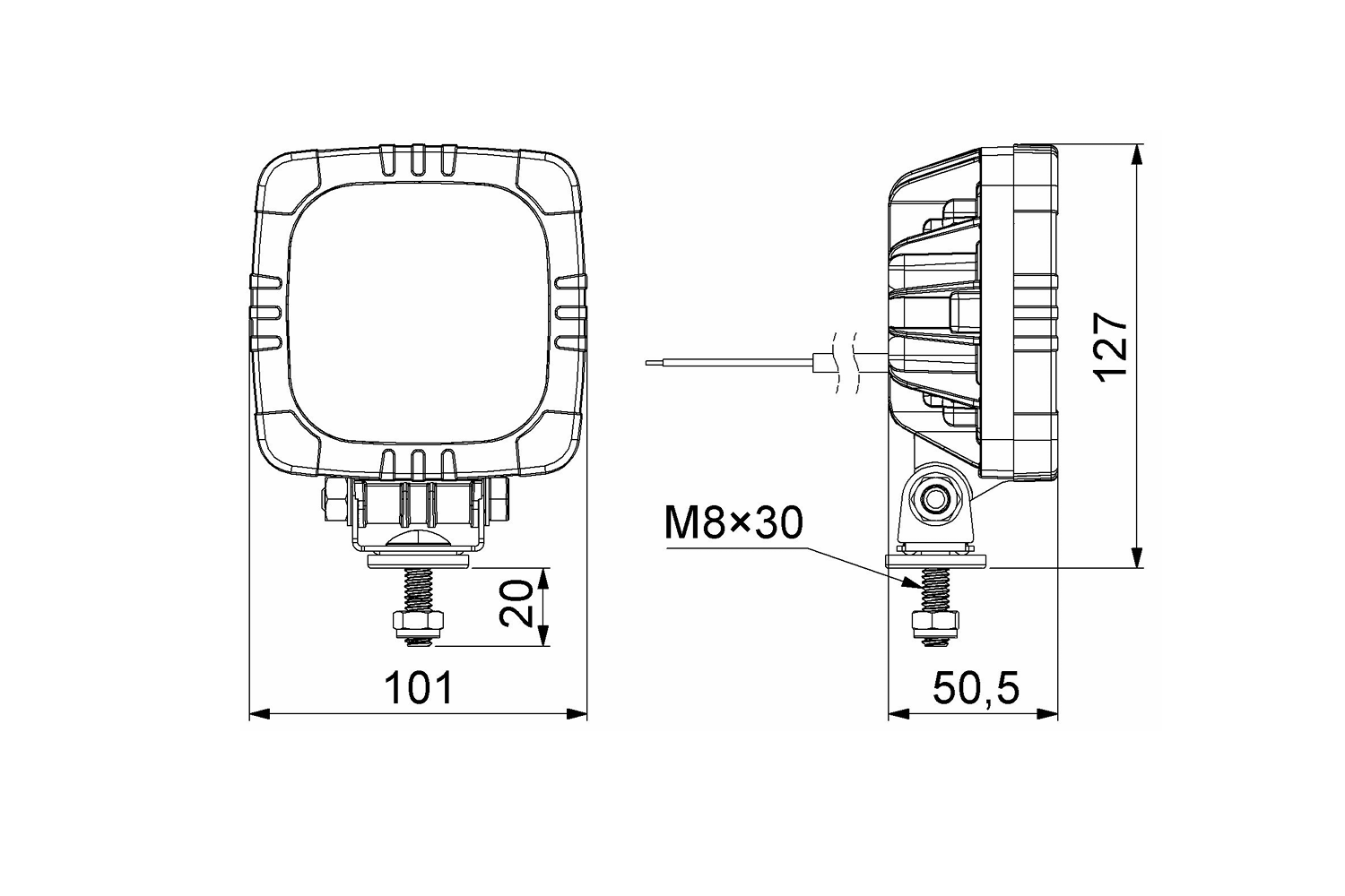 Die LED-Frontleuchte LZD 2805 aus der ROCA-Serie ist für die Montage links und rechts am Fahrzeug geeignet und misst 101 mm in der Breite, 127 mm in der Höhe und 50,5 mm in der Tiefe . Sie ist für einen Spannungsbereich von 12–24 V ausgelegt und verfügt über ein 1 m langes Kabel mit einem Querschnitt von 4 x 0,5 mm² für eine schnelle und einfache Installation. Dank LED-Technologie bietet die Leuchte hohe Leistung, Langlebigkeit und Energieeffizienz und gewährleistet so die Sicherheit unter verschiedenen Verkehrsbedingungen.