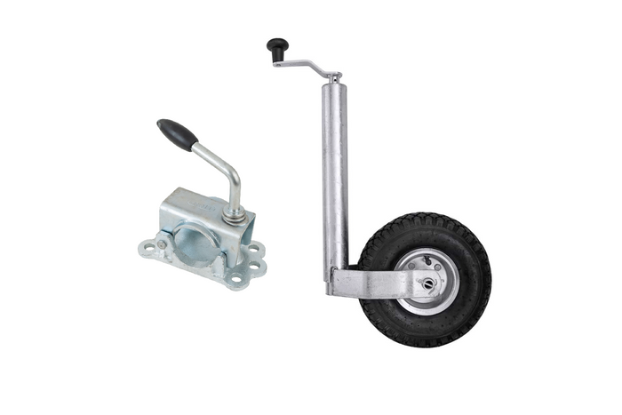Das Stützrad- und Klemmenset ist eine praktische und zuverlässige Lösung zur Stabilisierung des Anhängers im geparkten Zustand und erleichtert das Rangieren und Rollen auf dem Hof , der Einfahrt, dem Campingplatz oder in der Werkstatt. Es ermöglicht das bequeme An- und Abkuppeln des Anhängers an die Deichsel sowie ein präzises Positionieren. Das Stützrad stabilisiert den Anhänger , ist aber nicht zum Anheben mit Ladung geeignet . Die Klemme hingegen ist ein wichtiges Befestigungselement, das eine stabile und sichere Verbindung des Stützrads mit der Deichsel und dessen sichere Positionierung gewährleistet. Diese Kombination erhöht den Komfort und die Sicherheit von Transport-, Boots- und Wohnwagenanhängern und garantiert Langlebigkeit und Stabilität der Konstruktion. Überprüfen Sie aus Sicherheitsgründen vor jeder Fahrt den Hebeldruck und den Zustand des Stützrads.