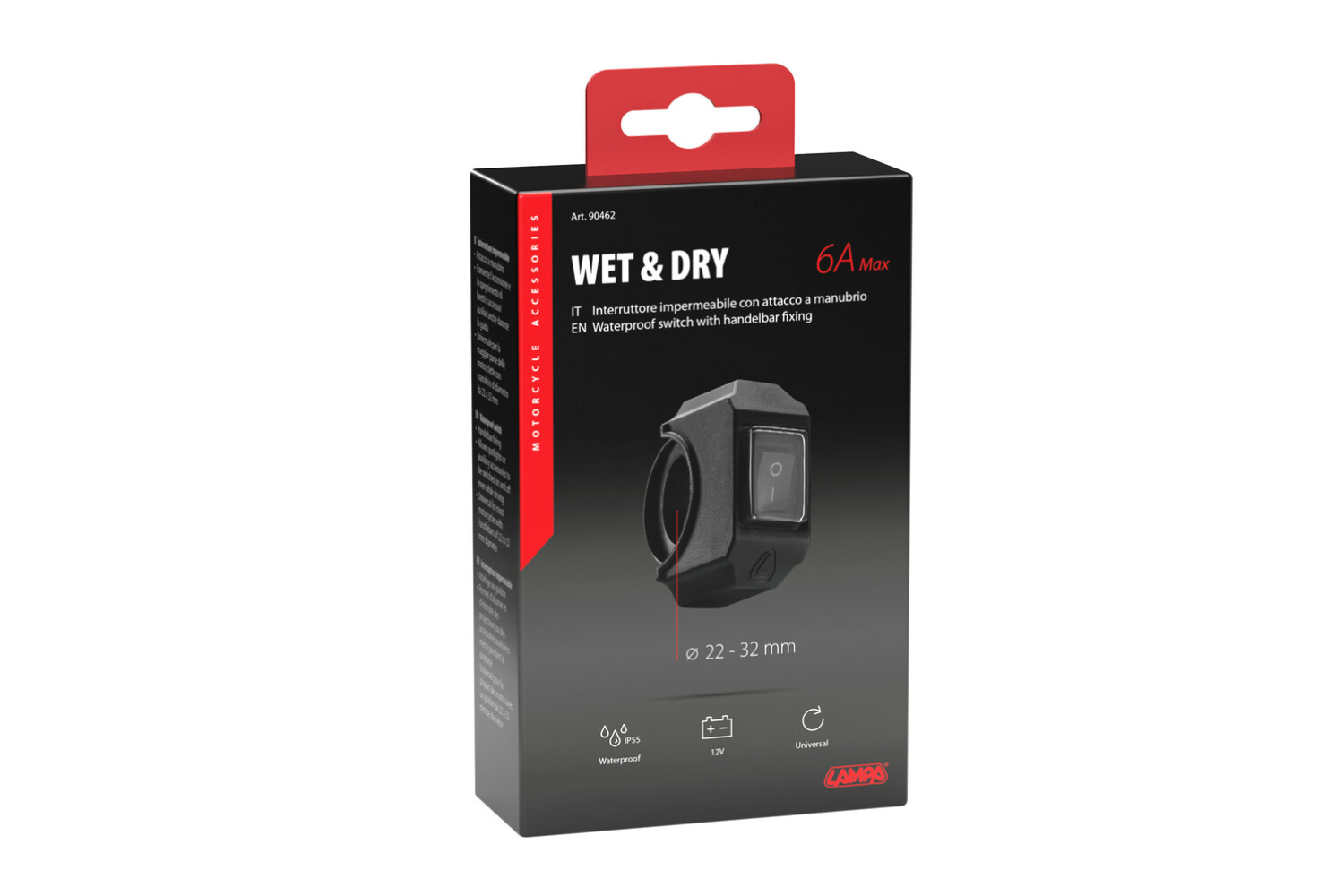Wasserdichter Lenkradschalter LAMP 90462 zur Steuerung elektrischer Geräte, max. 12 V, 6 A
