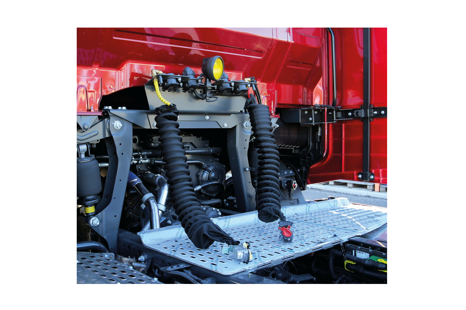 Dieses Produkt ist ideal für Sattelzüge und Nutzfahrzeuge , bei denen Kabel anfällig für Beschädigungen, Verschmutzungen und Verwicklungen sind. Die Abdeckung erhöht die Lebensdauer des Systems, schützt die Kabel vor Abrieb und erleichtert die Wartung. Das Ergebnis ist eine einfache Handhabung und ein professionelles Erscheinungsbild des Fahrzeugs.