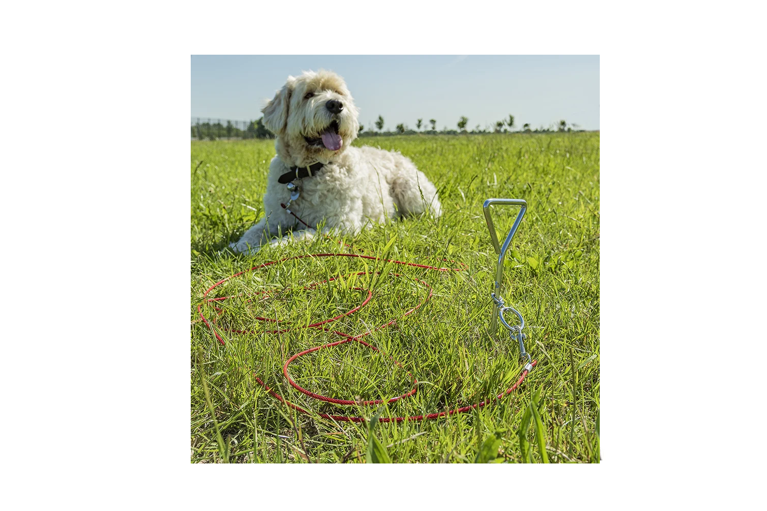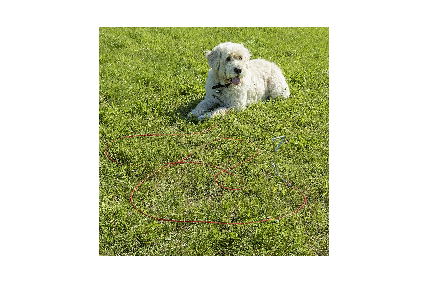 Der Spiralpfosten 361857 mit Stahlseil ist eine praktische Lösung , um Ihr Haustier sicher im Freien, z. B. im Garten, auf dem Campingplatz, beim Picknick oder im Urlaub, anzubinden . Dieses Set ermöglicht Ihrem Hund, sich innerhalb eines festgelegten Bereichs frei zu bewegen, während gleichzeitig das Risiko des Weglaufens verringert wird.