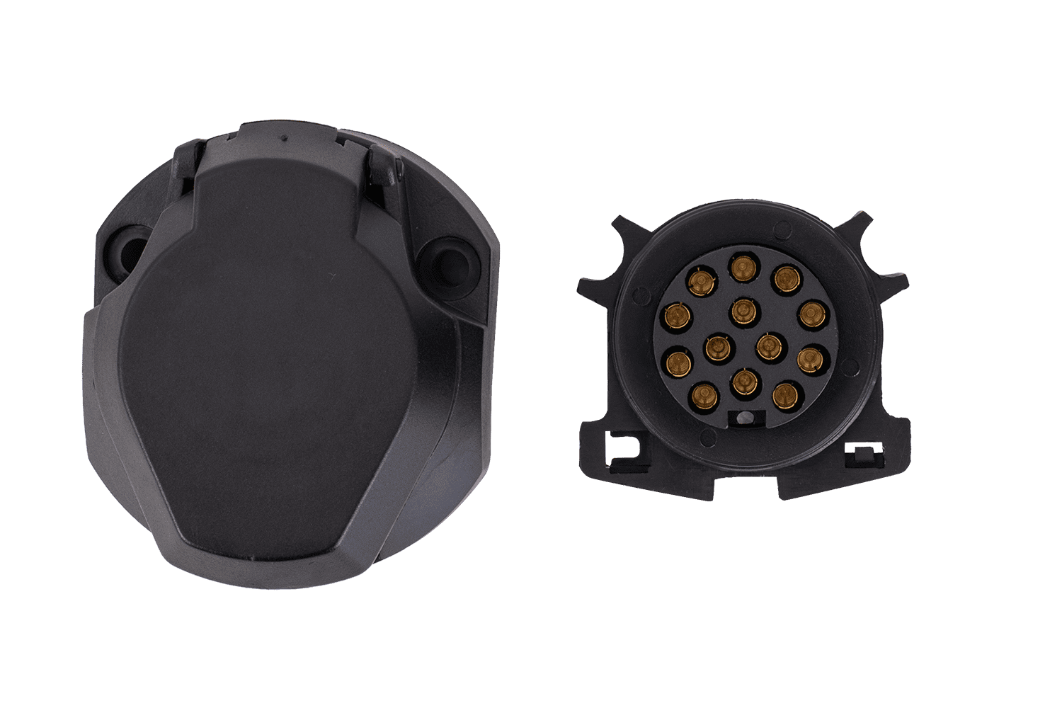- Diese 13-polige 12-V-Steckdose, die zur Montage an der Anhängerkupplung eines Fahrzeugs vorgesehen ist, dient zum Anschluss eines Wohnwagens oder anderen Anhängers mit einem Gewicht von über 750 Kilogramm. Sie gewährleistet eine zuverlässige elektrische V