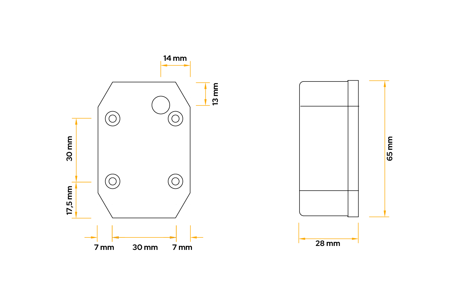 Die für die Montage sowohl auf der linken als auch auf der rechten Fahrzeugseite konzipierte FLEXIPOINT I Umrissleuchte von ASPÖCK zeichnet sich durch folgende Maße aus: Breite 44 mm, Höhe 65 mm, Tiefe 28 mm . Ausgestattet mit einem 100 mm Befestigungswinkel und einem 0,5 m Flachkabel ermöglicht es eine einfache und schnelle Installation und kann in Lieferfahrzeugen, Anhängern, Sattelaufliegern und Wohnmobilen eingesetzt werden.