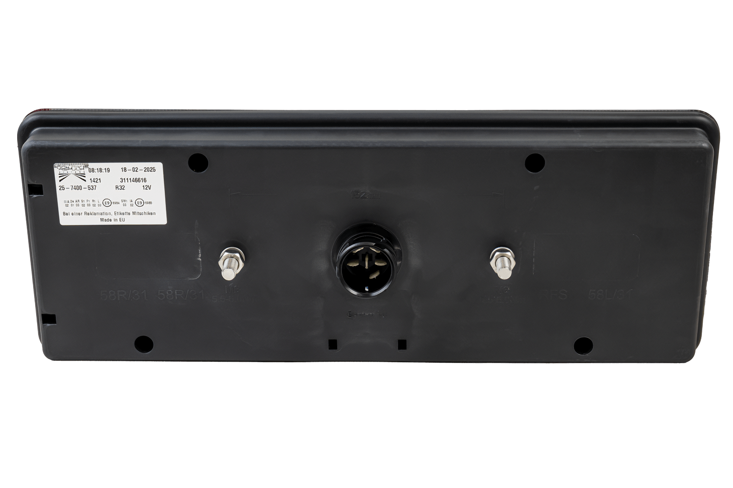 Die Europoint III Rückleuchte von ASPÖCK ist für den Einbau auf der rechten Fahrzeugseite vorgesehen und hat folgende Maße: Breite 400 mm, Höhe 153 mm, Tiefe 88 mm. Ausgestattet mit einem 7-poligen ASS2.1-Anschluss ermöglicht es eine einfache und schnelle Installation in Anhängern, Bussen und Abschleppwagen.