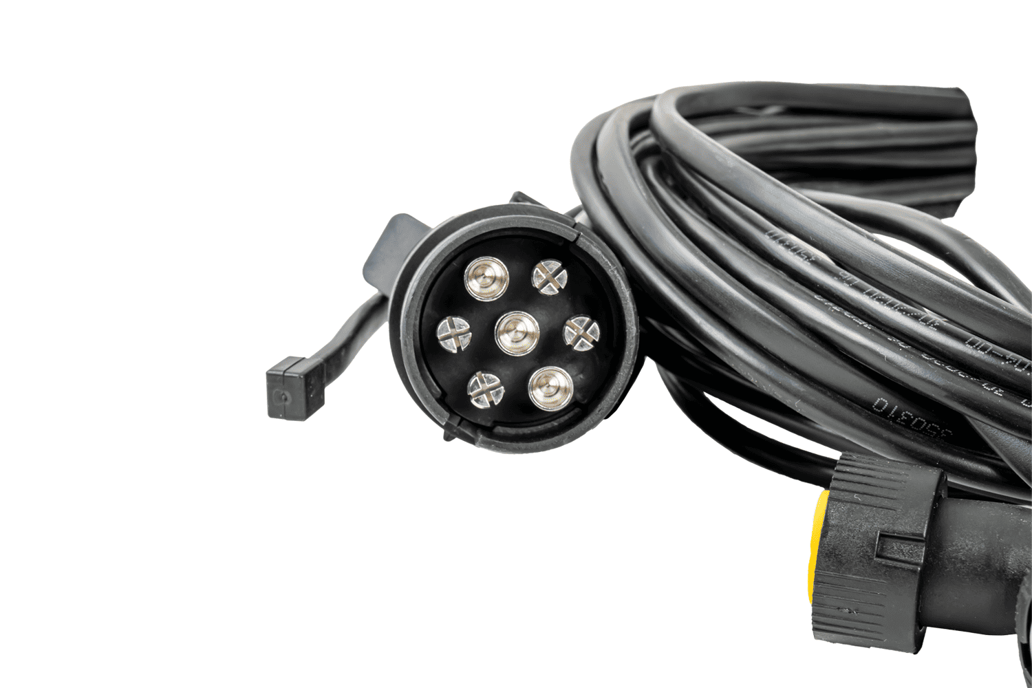 Zum Anschluss der Rücklichter ist der Kabelbaum mit zwei 5-poligen Bajonettsteckern ausgestattet. Das Bajonettsystem gewährleistet eine schnelle und sichere Montage und schließt die Gefahr einer unbeabsichtigten Trennung während der Fahrt aus. Die Konstruktion der Steckverbinder gewährleistet eine wasserdichte Verbindung und schützt die Kontakte vor Korrosion, was einen langfristigen, störungsfreien Betrieb der gesamten Anhängerbeleuchtungsanlage gewährleistet.