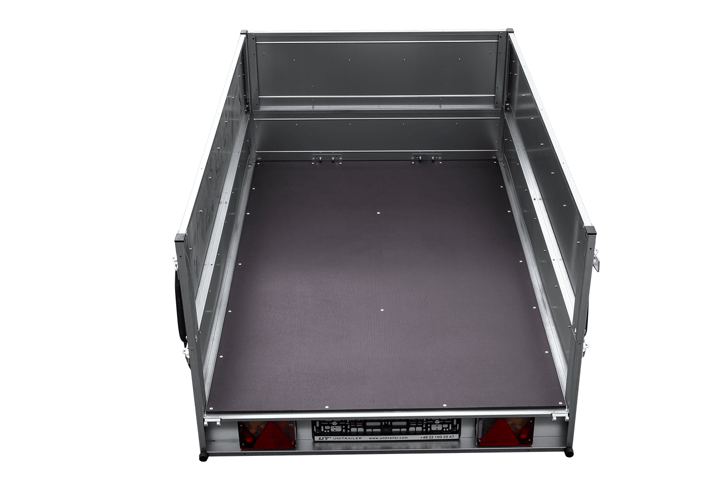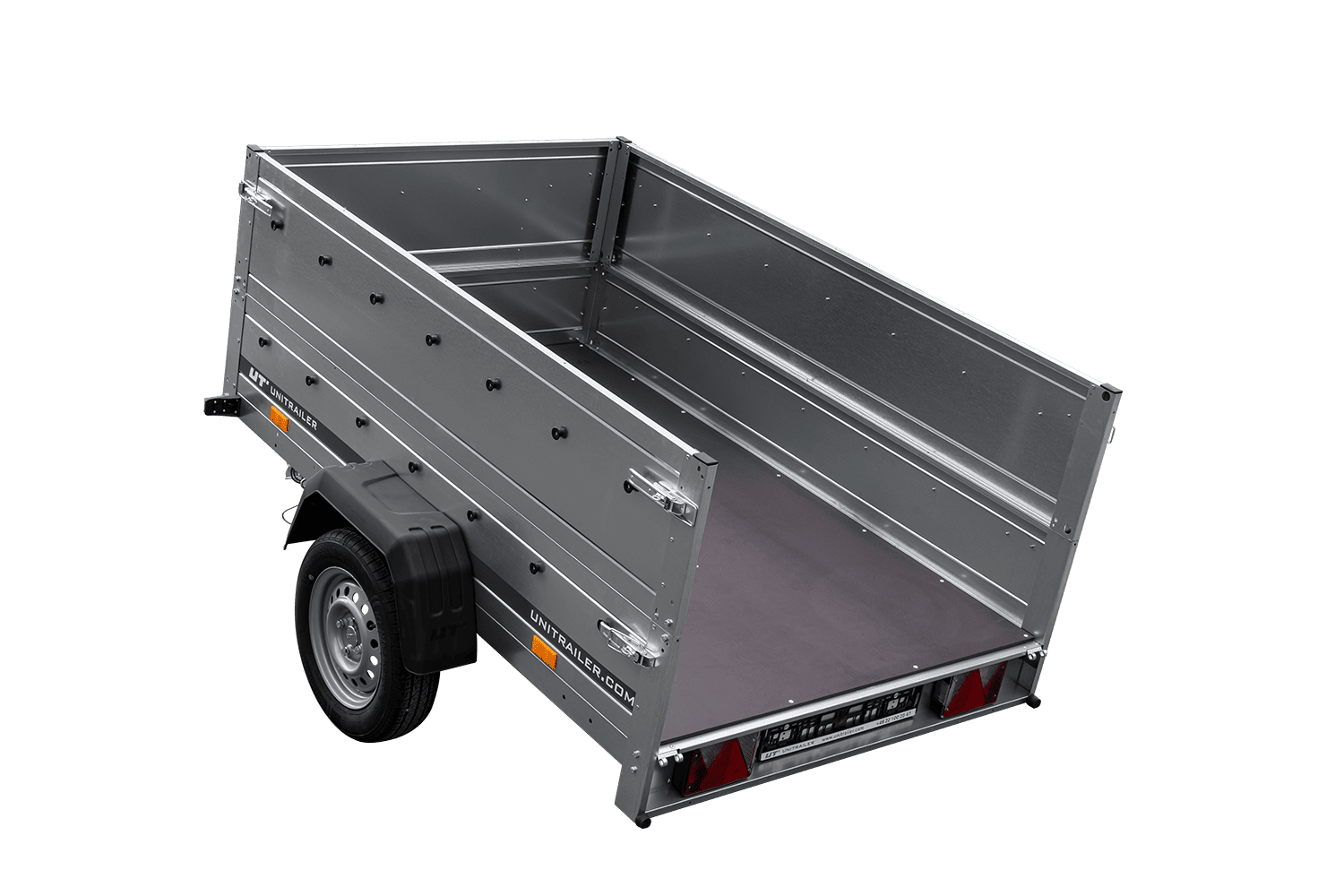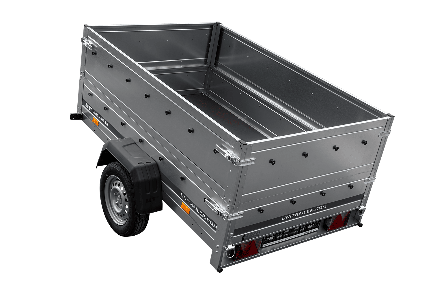 - Die seitlich auf der Ladefläche angebrachten Räder führen zu einem niedrigeren Schwerpunkt, besserem Fahrverhalten und einem stabilen Anhänger, selbst bei unbeladenem Fahrzeug.