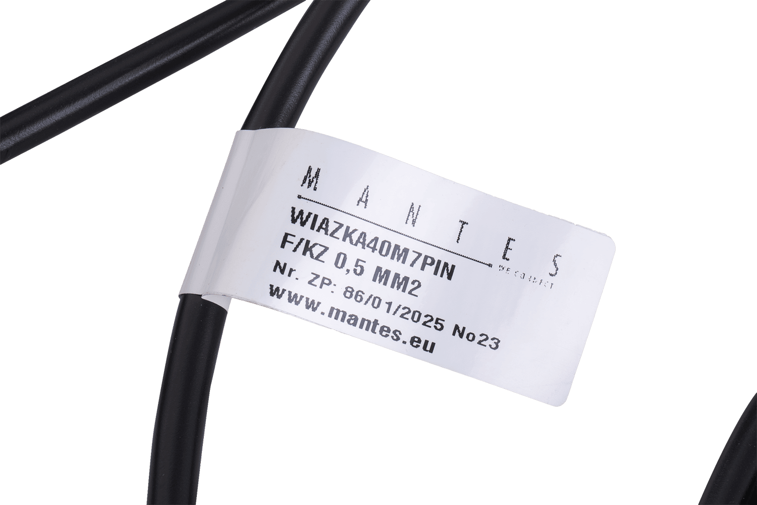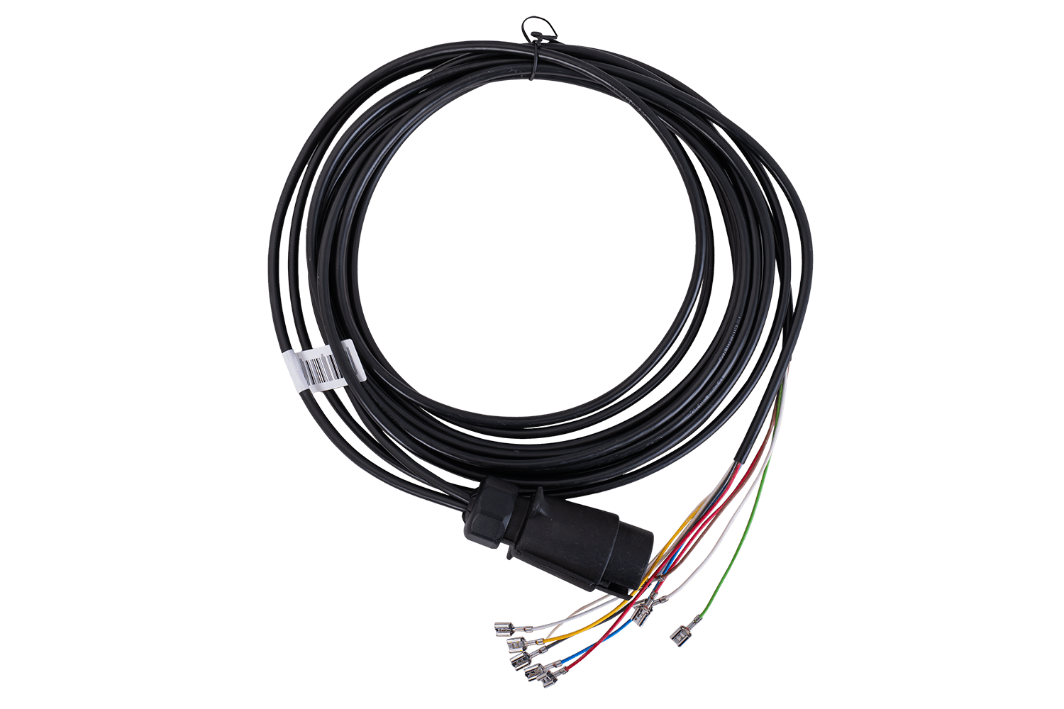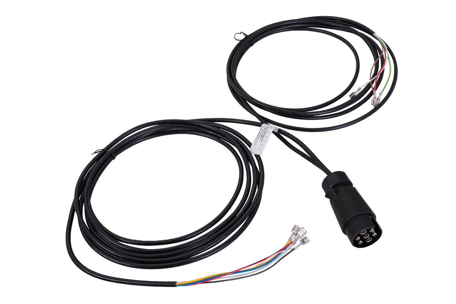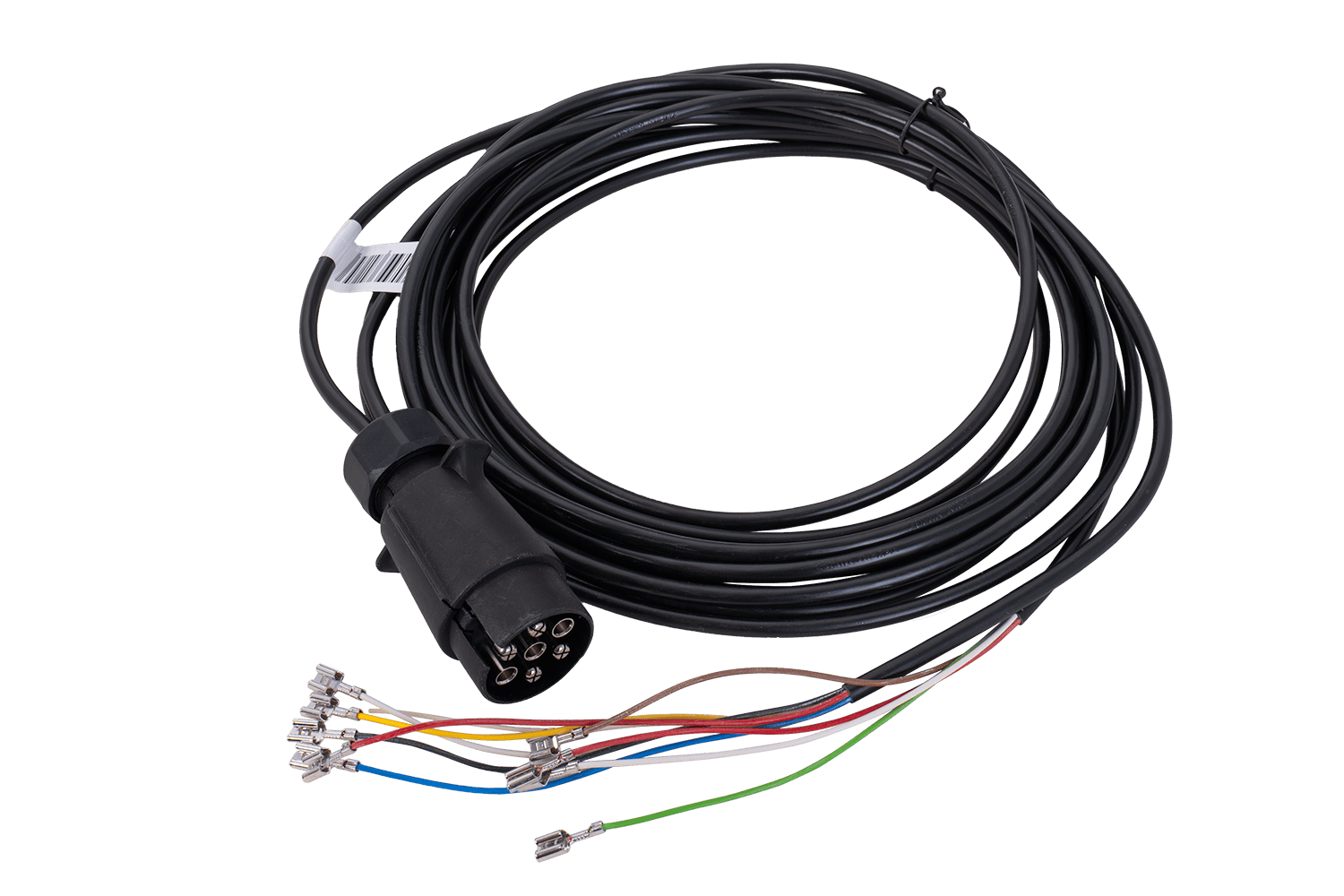 Das MANTES-Elektrosystem ist eine praktische und zuverlässige Lösung für PKW-Anhänger. Das 4 Meter lange Hauptkabel mit einem Querschnitt von 0,5 mm² ist mit einem 7-poligen Standardstecker ausgestattet und gewährleistet so eine universelle Kompatibilität mit den meisten Fahrzeugen.