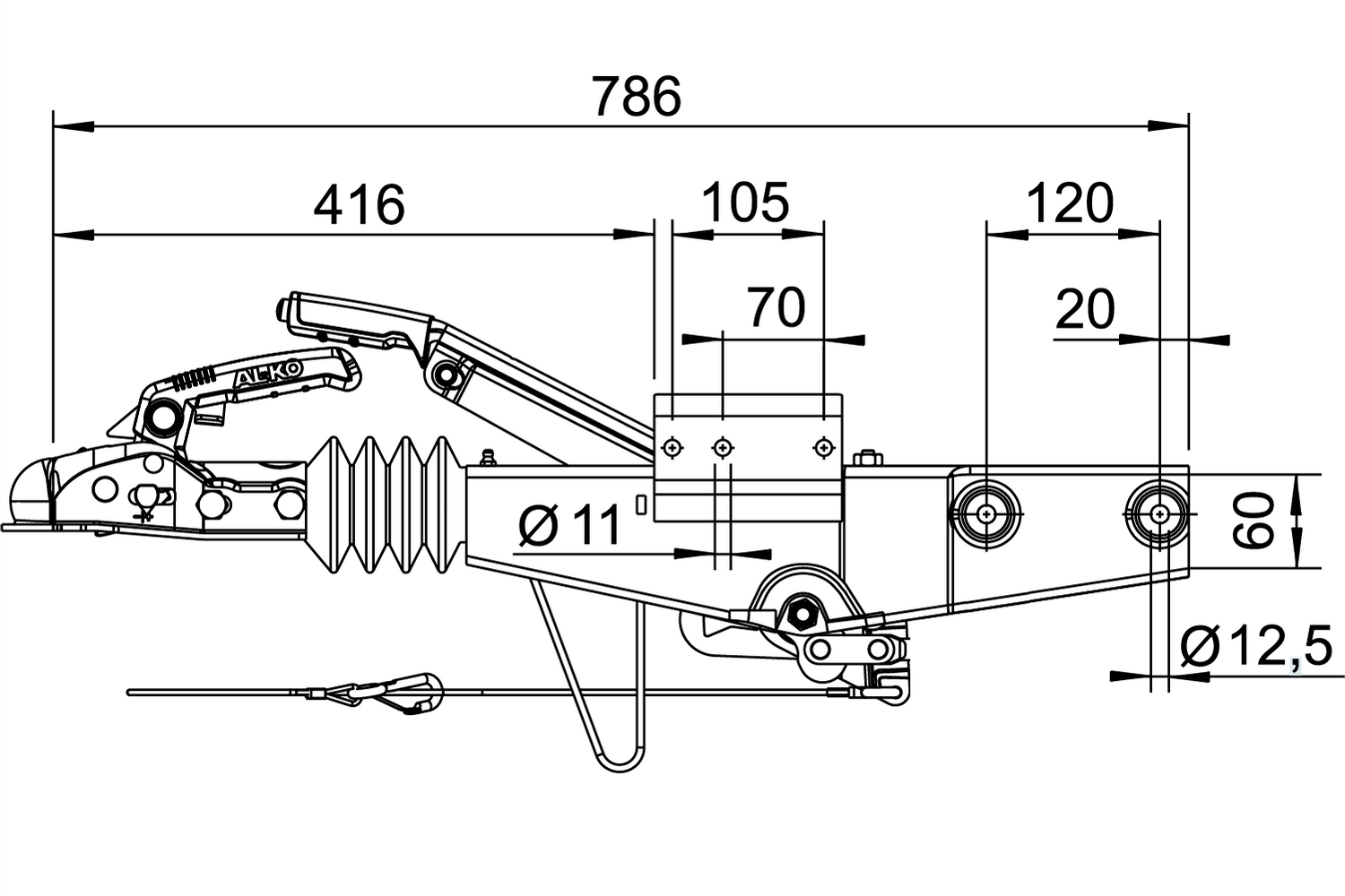 Die Auflaufvorrichtung 60S/2 von AL-KO ist eine vielseitige Lösung für Deichselanhänger mit 60 mm Vierkantprofil und einem Gesamtgewicht von 450 kg bis 750 kg. Das Gerät zeichnet sich durch eine maximal zulässige Stützlast von 75 kg aus, die eine optimale Lastverteilung zwischen Anhänger und Zugfahrzeug gewährleistet. Das 60S/2-Gerät ist mit einer Kugelkupplung AK 161 ausgestattet, die eine stabile Verbindung zum Fahrzeug gewährleistet, und ist mit dem Bremsmechanismus AL-KO 1636G/1637 kompatibel.