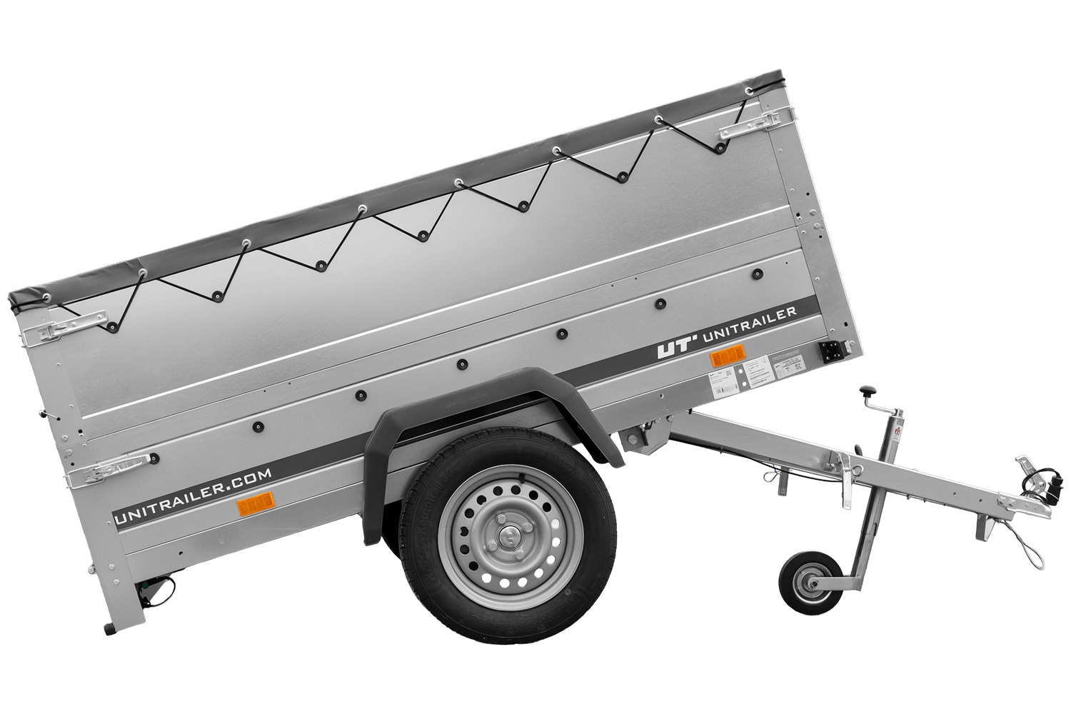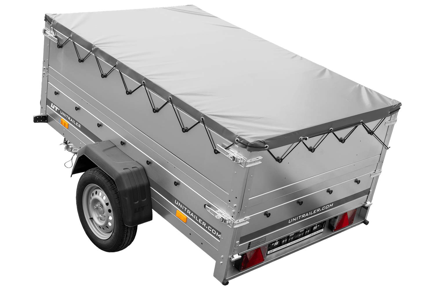 Leichter Anhänger 200x125 UNITRAILER GARDEN 201 KIPP mit BIS-Seitenwänden und grauer Plane
