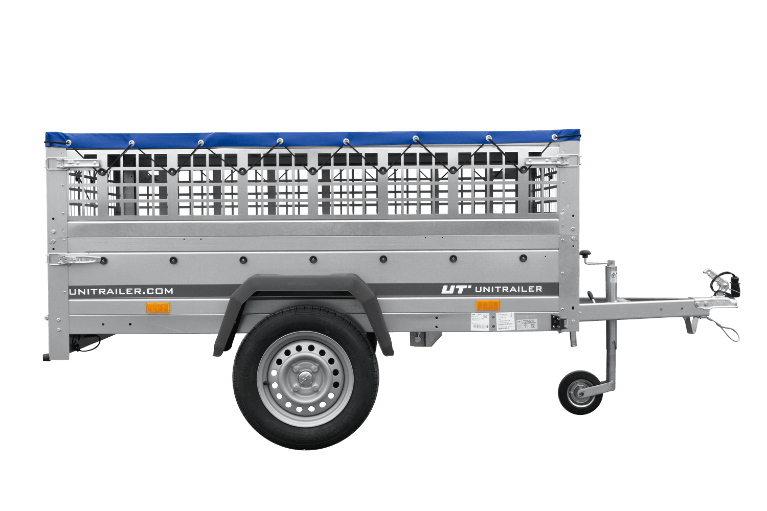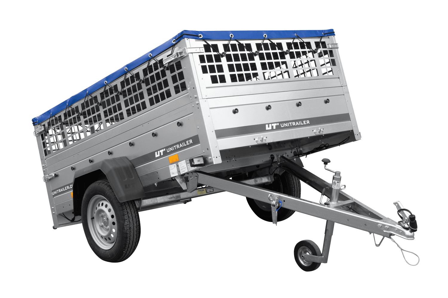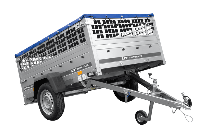 Einachsanhänger 200x125 UNITRAILER GARDEN 201 KIPP mit Gitterseitenwänden, H-0-Rahmen und blauer Plane