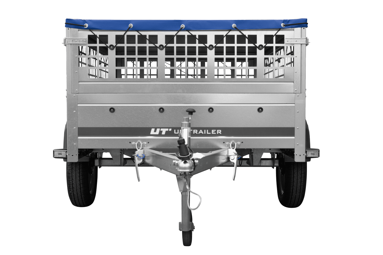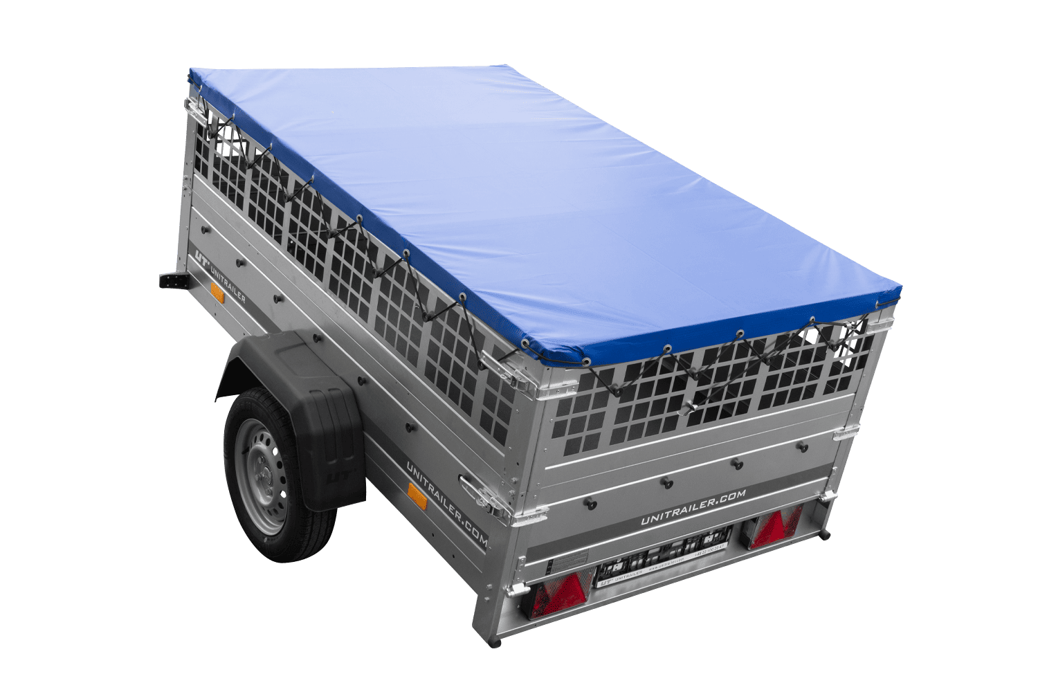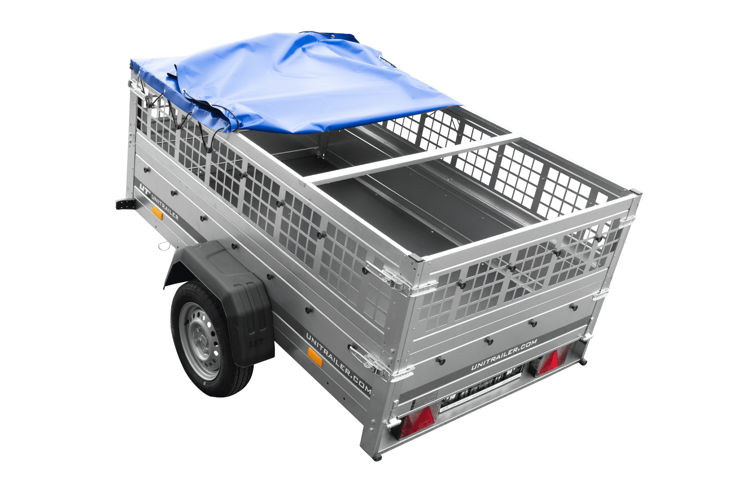 Einachsanhänger 200x125 UNITRAILER GARDEN 201 KIPP mit Gitterseitenwänden, H-0-Rahmen und blauer Plane